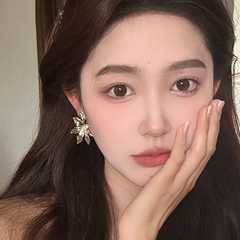 欧美夸张大气金属花朵耳钉小设计众高级感冷淡风耳环气质百搭耳饰
