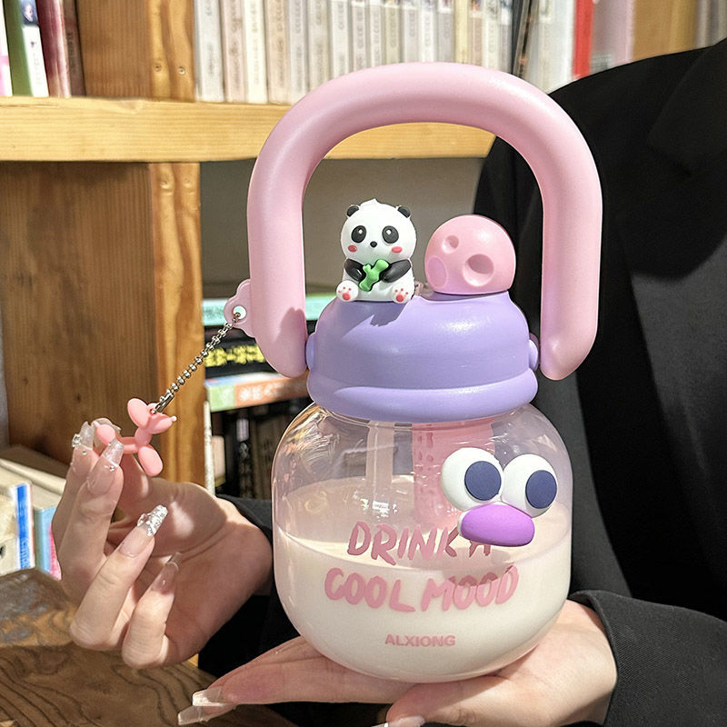 水杯男女生族新款便携可爱大容量女生吸管杯便携大容量吸管塑料杯