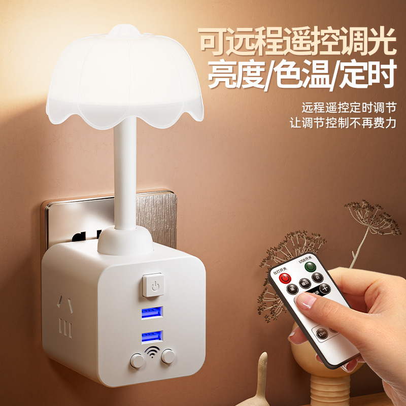 遥控小夜灯USB插座一体式卧室床头阅读灯婴儿喂奶睡眠灯护眼台灯