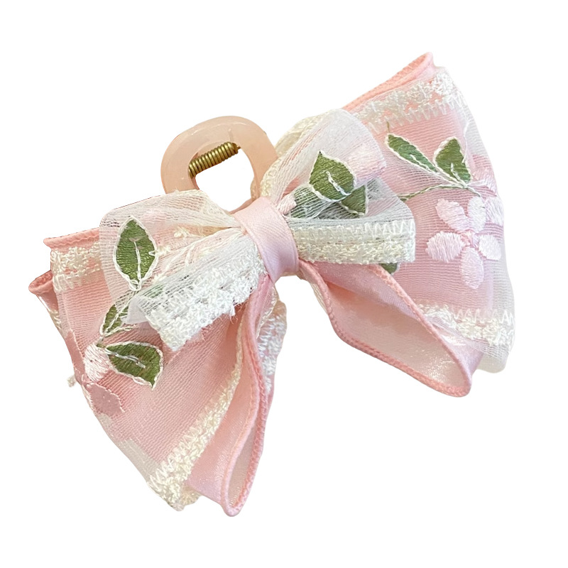原创手工刺绣温柔碎花蝴蝶结大号抓夹森系后脑勺发夹发卡鲨鱼夹子