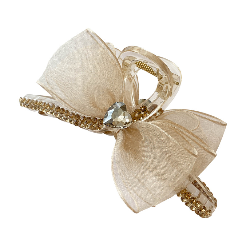 韩国婕克钻优雅网纱蝴蝶结大号发抓夹气质爱心后脑勺鲨鱼发夹子