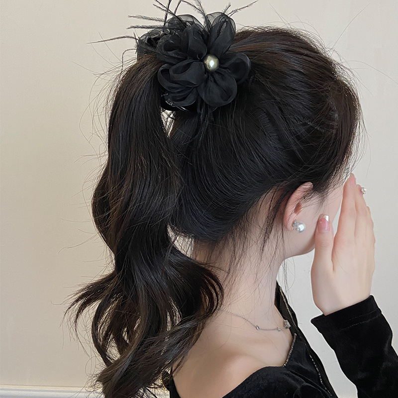 高级感气质泡泡花朵中号抓夹轻奢风高低马尾发夹发量少新款头花