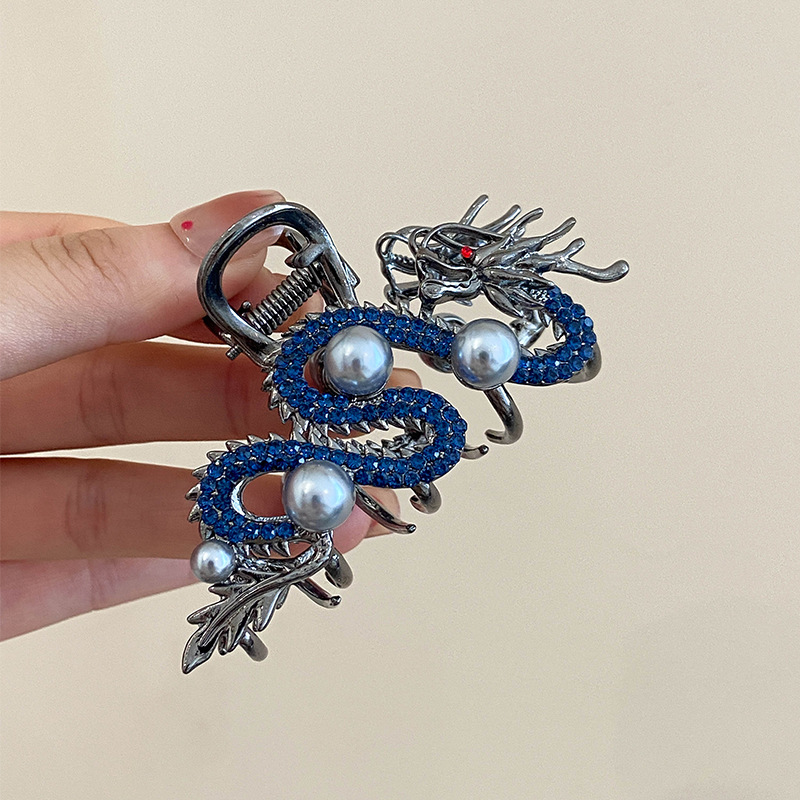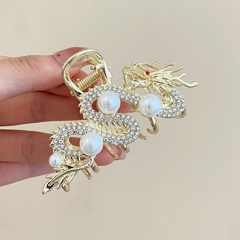 中国风金属生肖龙形抓夹中号个性风设计感珍珠抓夹鲨鱼夹头饰