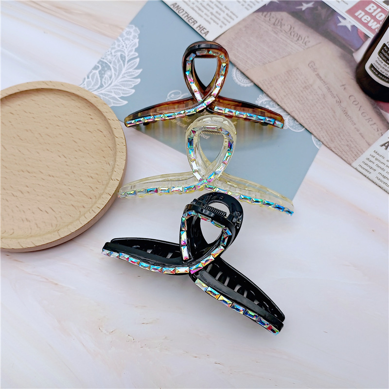 韩国新款闪钻大号交叉发夹水晶发卡气质后脑勺夹子女透视发饰鲨鱼