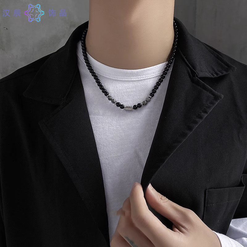 虎眼石地图石钛钢项链男新款黑曜石高级感简约风饰品