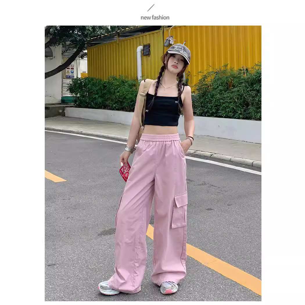 美式辣妹街头工装裤子女夏季宽松休闲嘻哈阔腿垂感长裤子