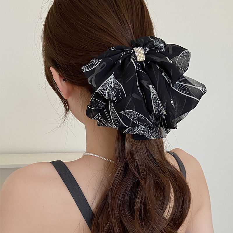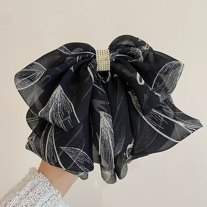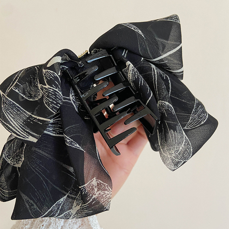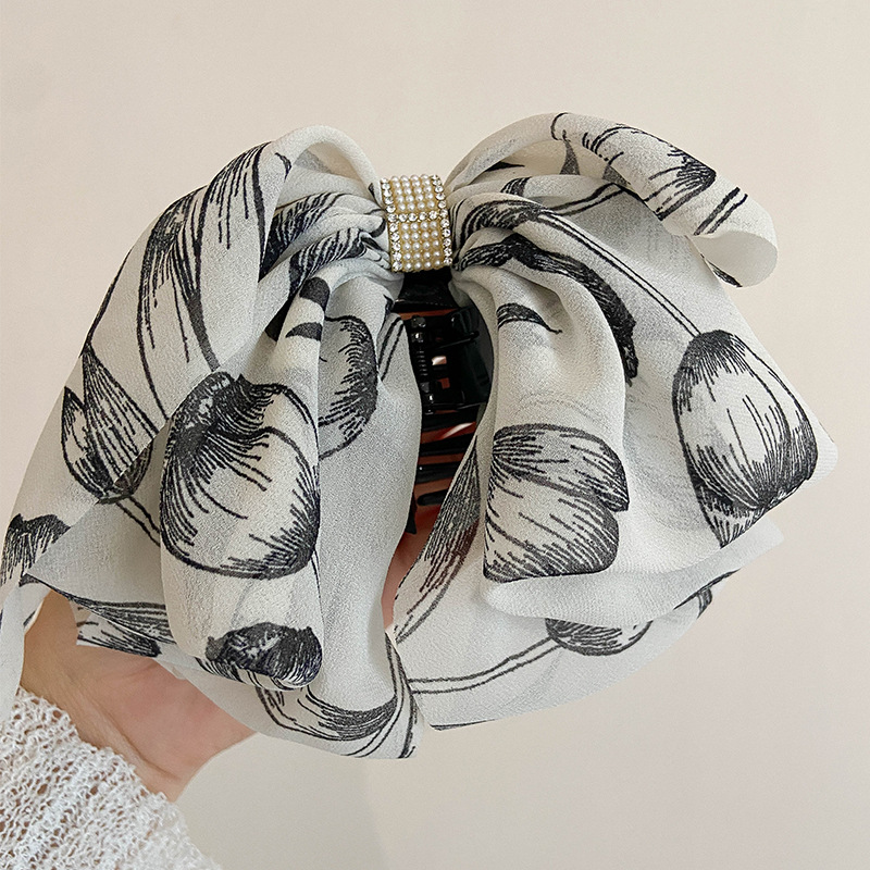 高级感新中式复古水墨画珍珠蝴蝶结马尾抓夹优雅郁金香发夹发饰品