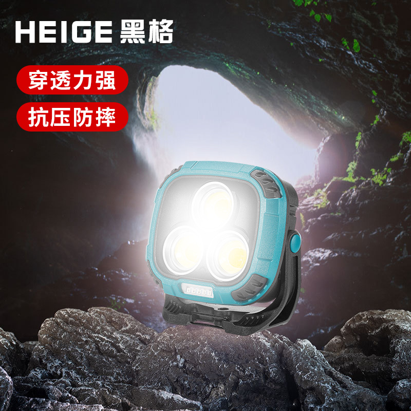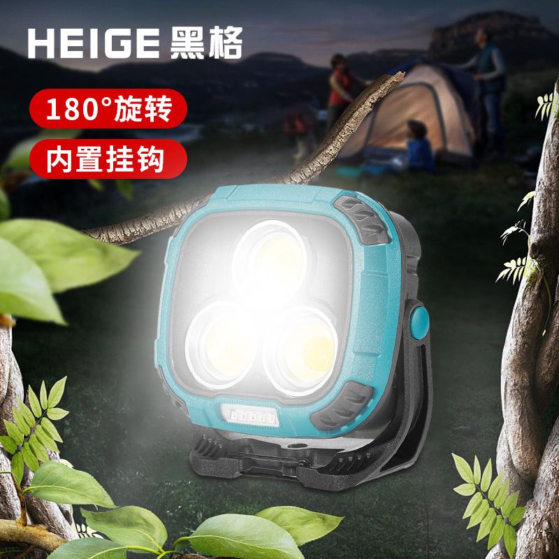 新款便携式COB高亮户外手电筒旋转带挂钩露营灯Type-C充电工作灯