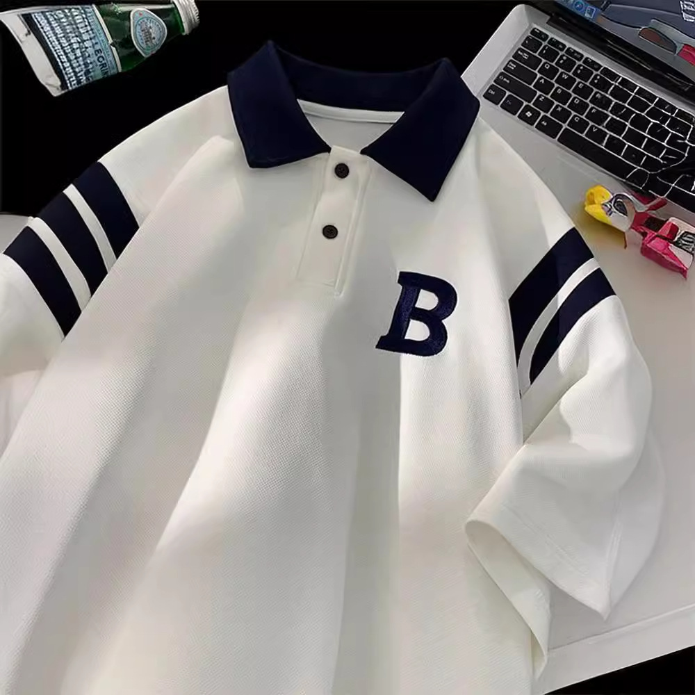 菠萝格刺绣POLO衫短袖男夏季新款潮牌美式学院风撞色翻领t恤