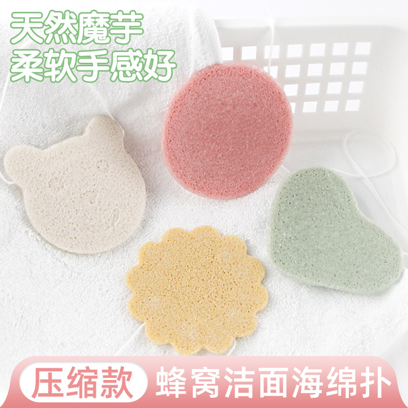 新款压缩天然魔芋洗面海绵环保可降解魔芋洗脸扑深层清洁洗脸神器