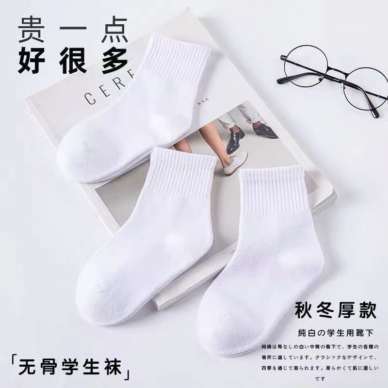 学生袜子纯棉中筒男女吸汗白色中大童春秋冬运动袜全棉学院风袋装