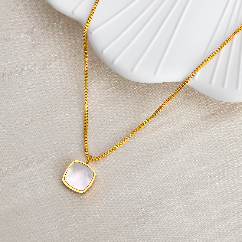 新款方形贝母项链女百搭简约时尚轻奢气质高级钛钢颈链配饰