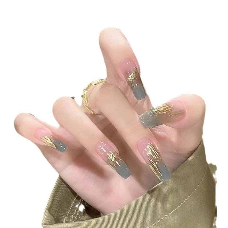 鎏金纯手工穿戴甲薄荷绿琥珀网红美甲气质长甲假指甲贴片