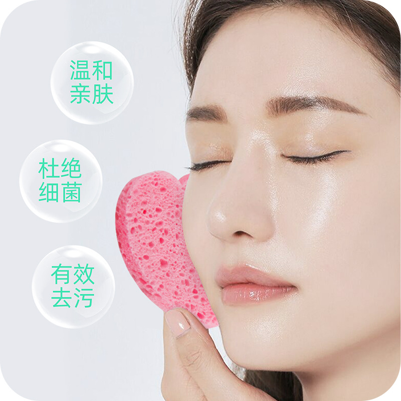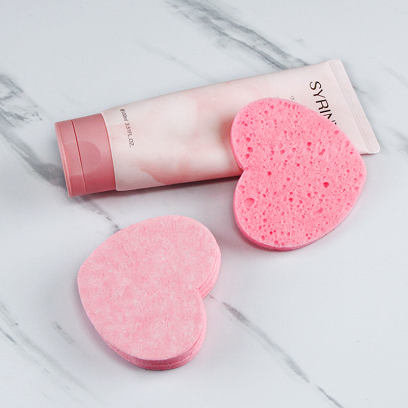 压缩可降解洗脸扑天然洁肤卸妆海棉清洁心形木浆棉洗脸扑