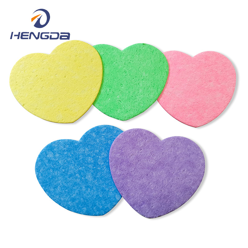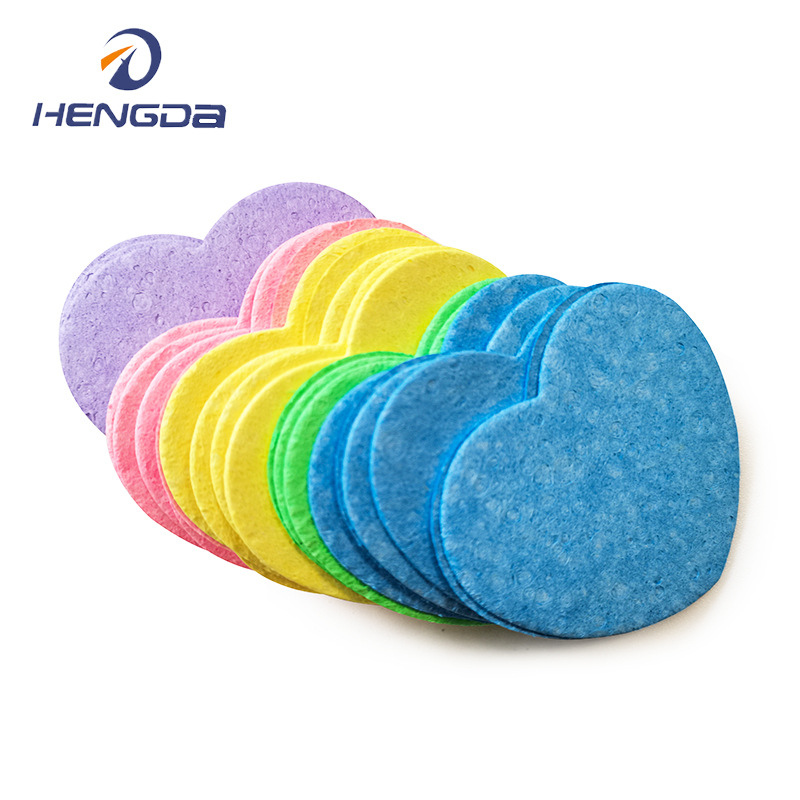 木浆棉清洁面扑吸水海绵纤维棉片多色心形压缩可降解木浆绵洗脸扑