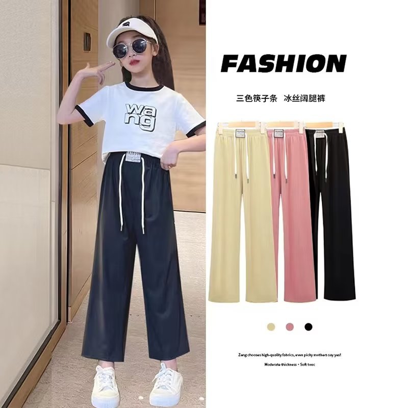 女孩冰丝夏款阔腿裤新款中大童网红长裤女童宽松夏季休闲裤潮