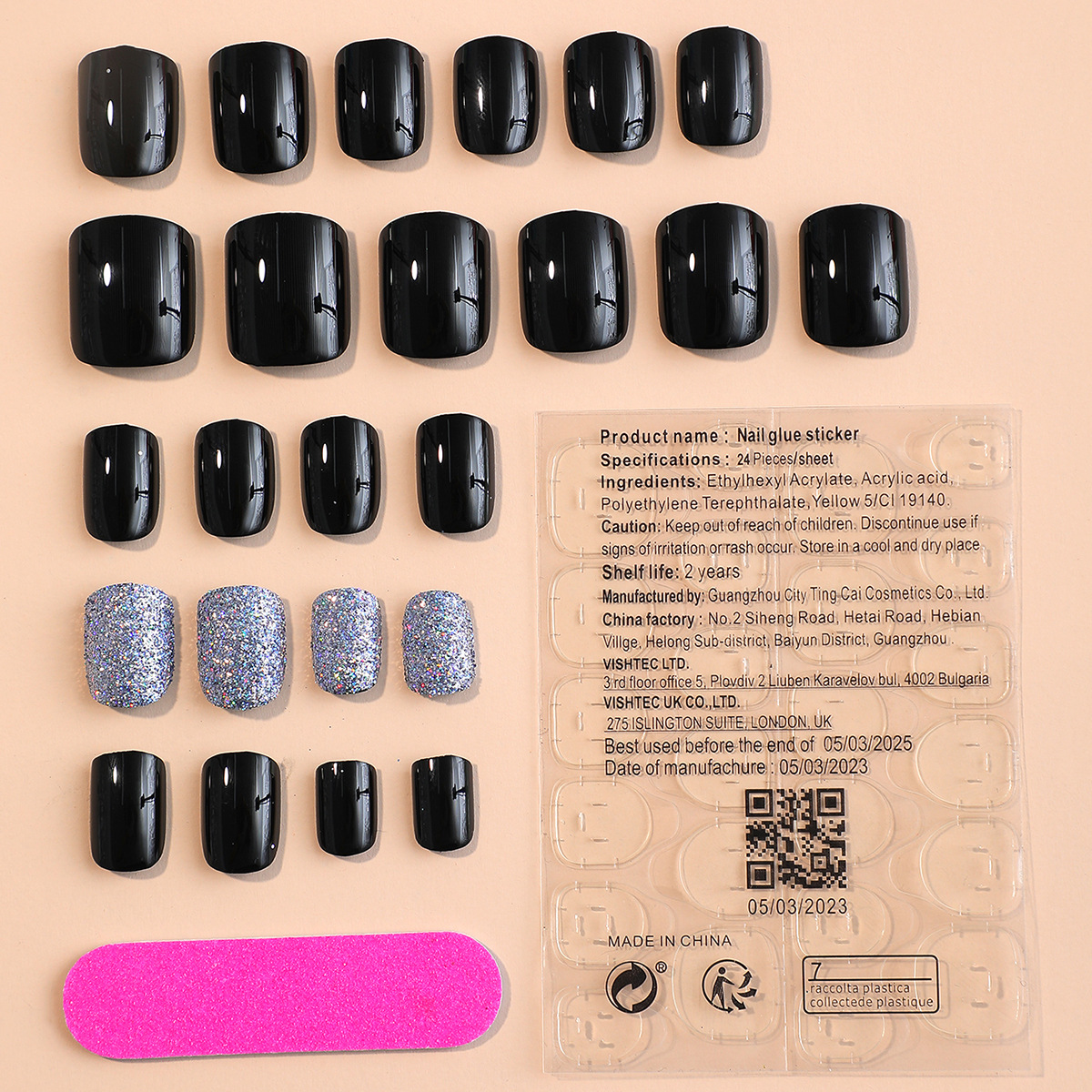 新款穿戴甲简约风短方款闪粉ins美甲甲片假指甲成品 nails 假指甲