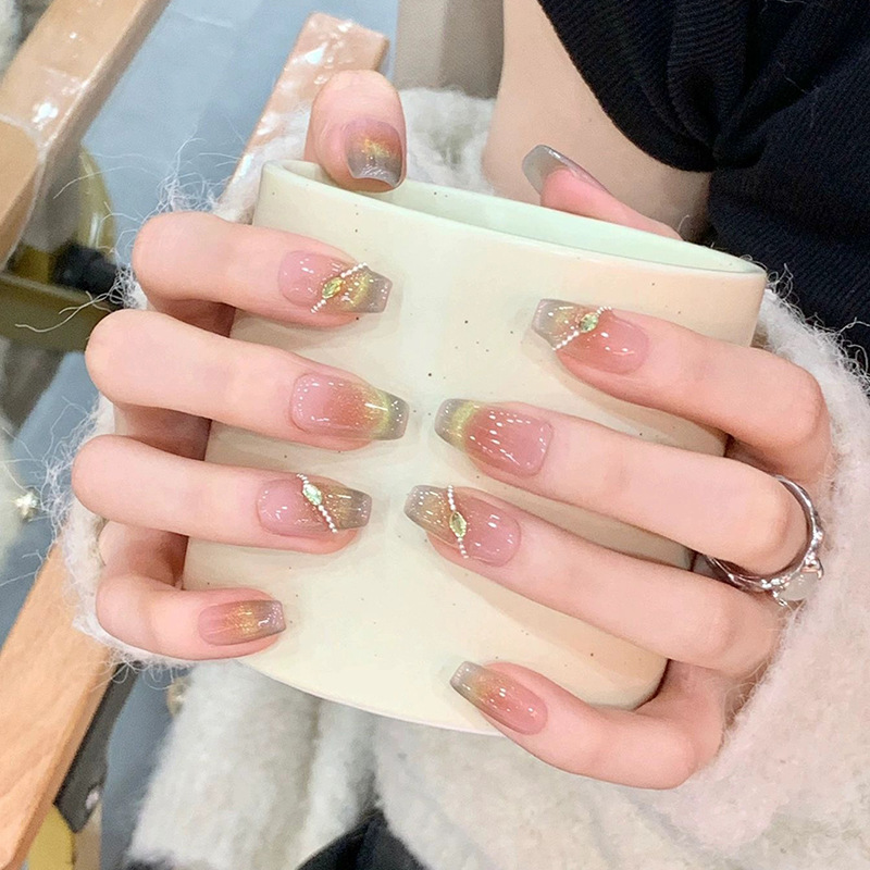 纯手工穿戴甲猫眼晕染美甲假指甲贴片高级感显白甲片