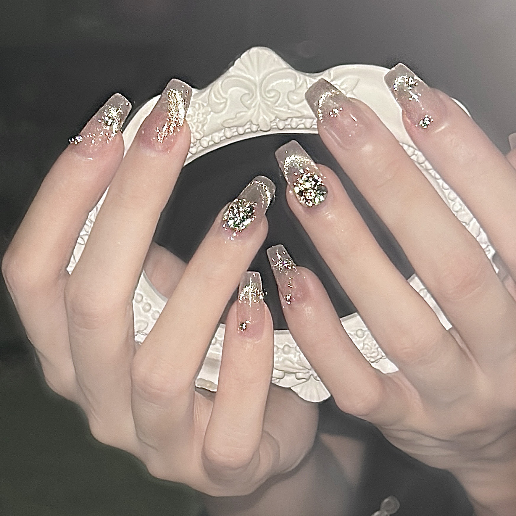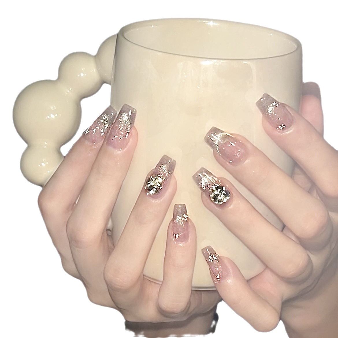 纯手工爆款穿戴甲动感法式猫眼爆闪显白纯欲风美甲贴片裸色可拆卸