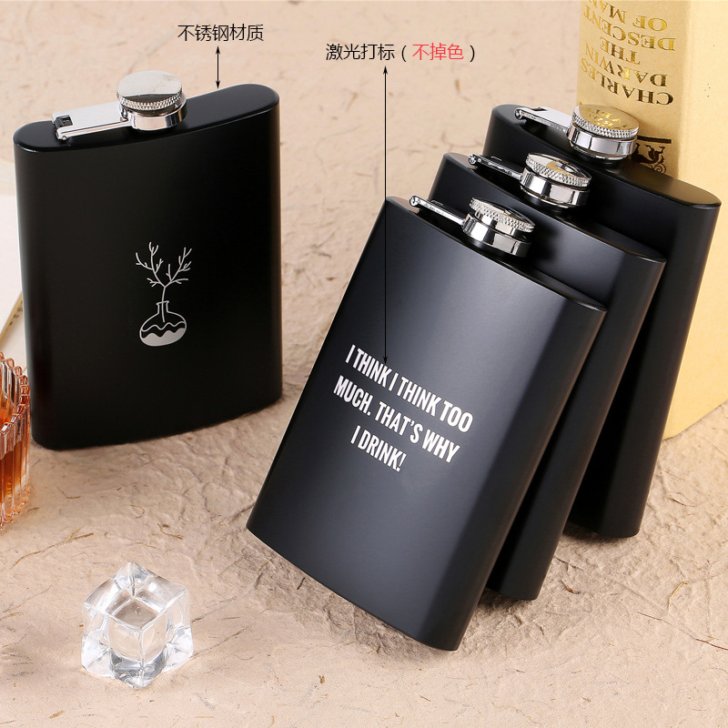 白酒不锈钢8盎司黑色酒壶创意户外便携随身