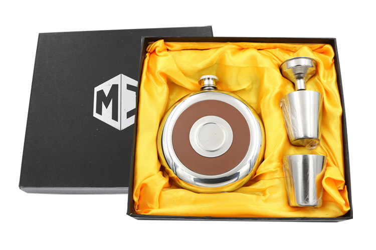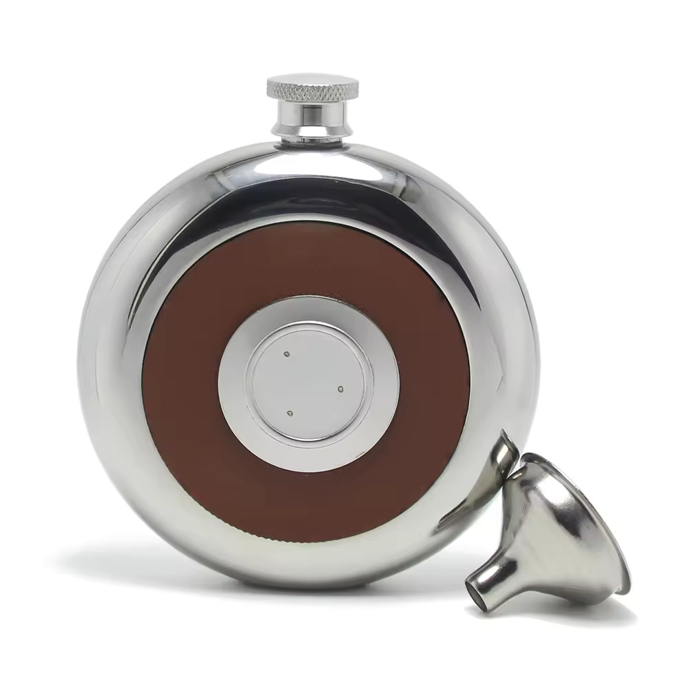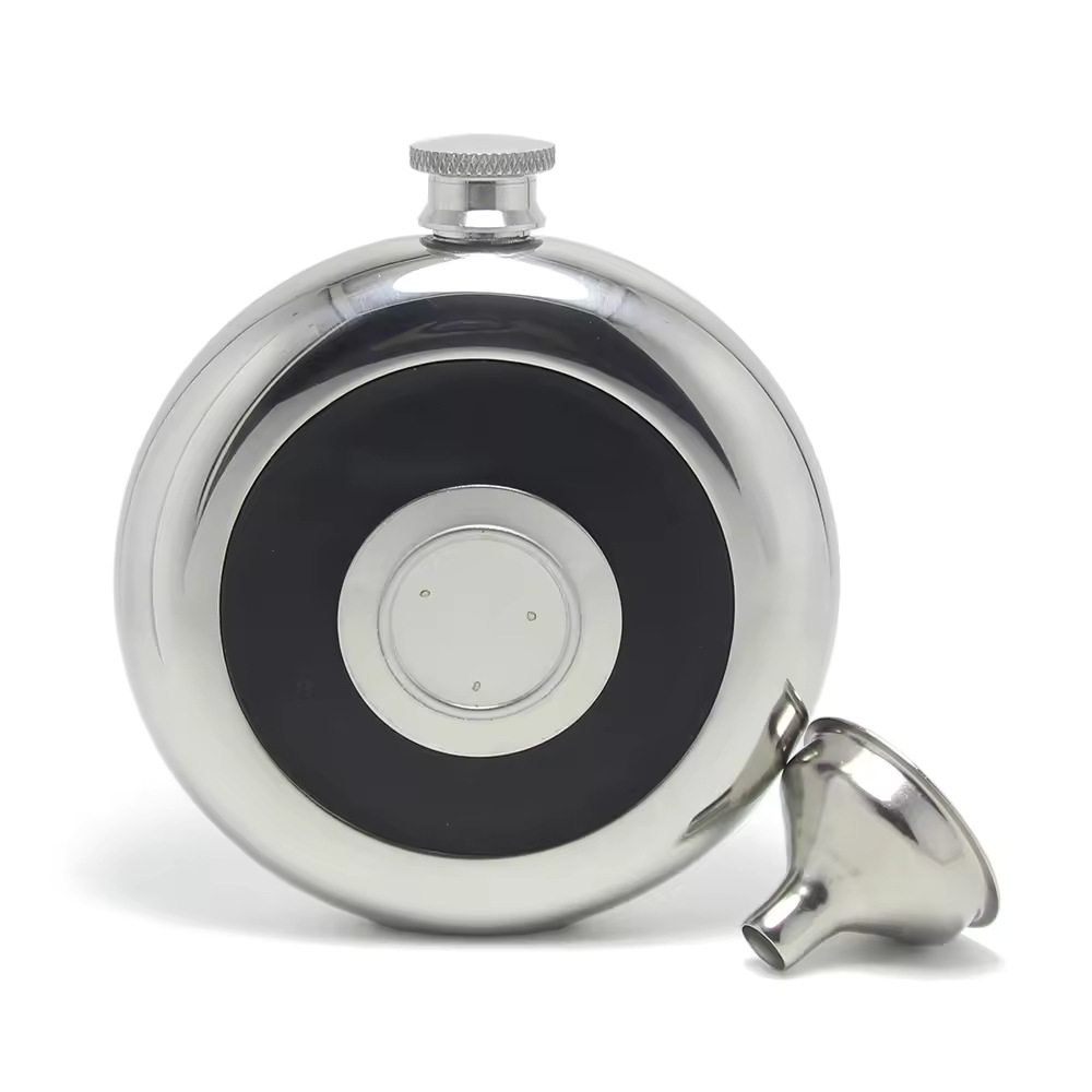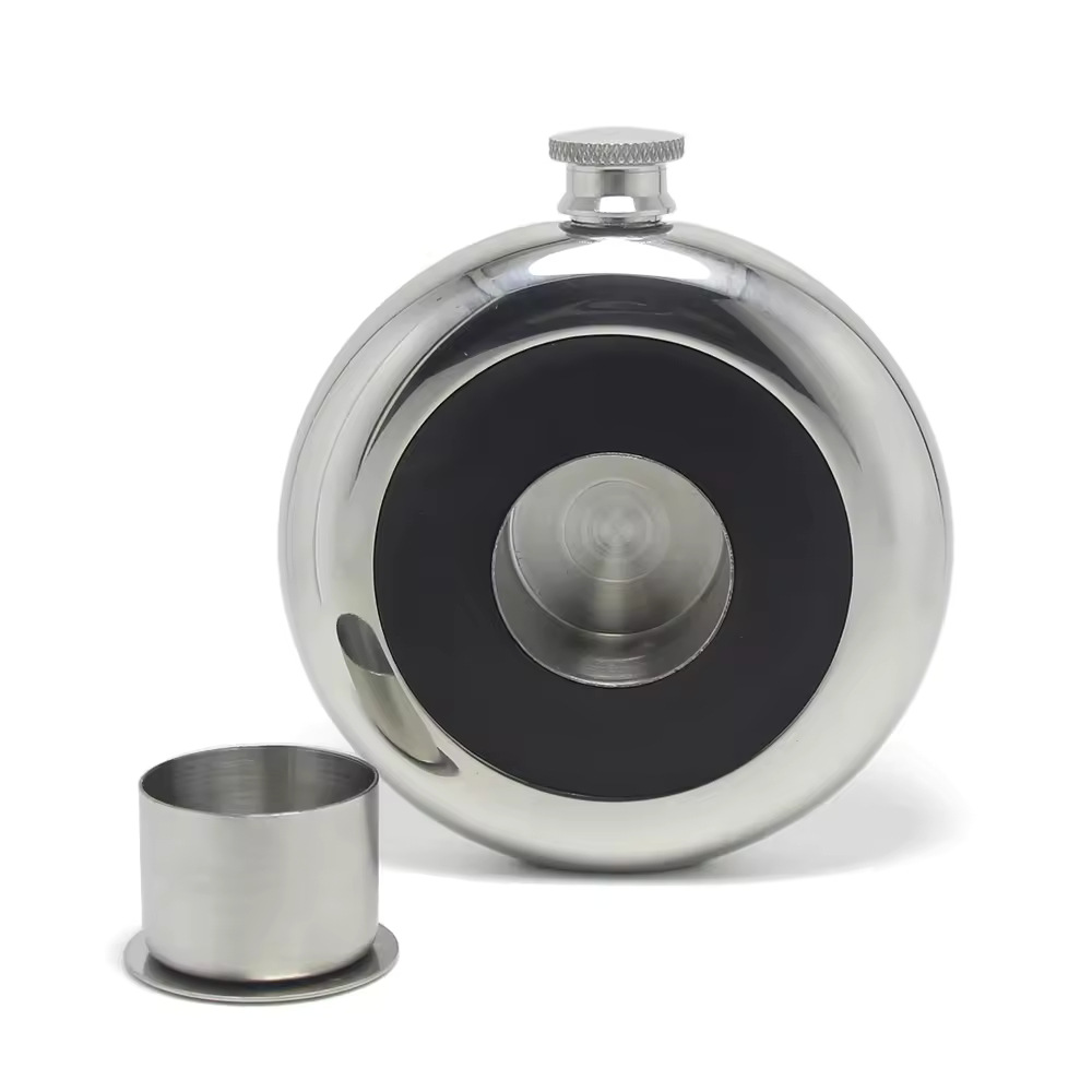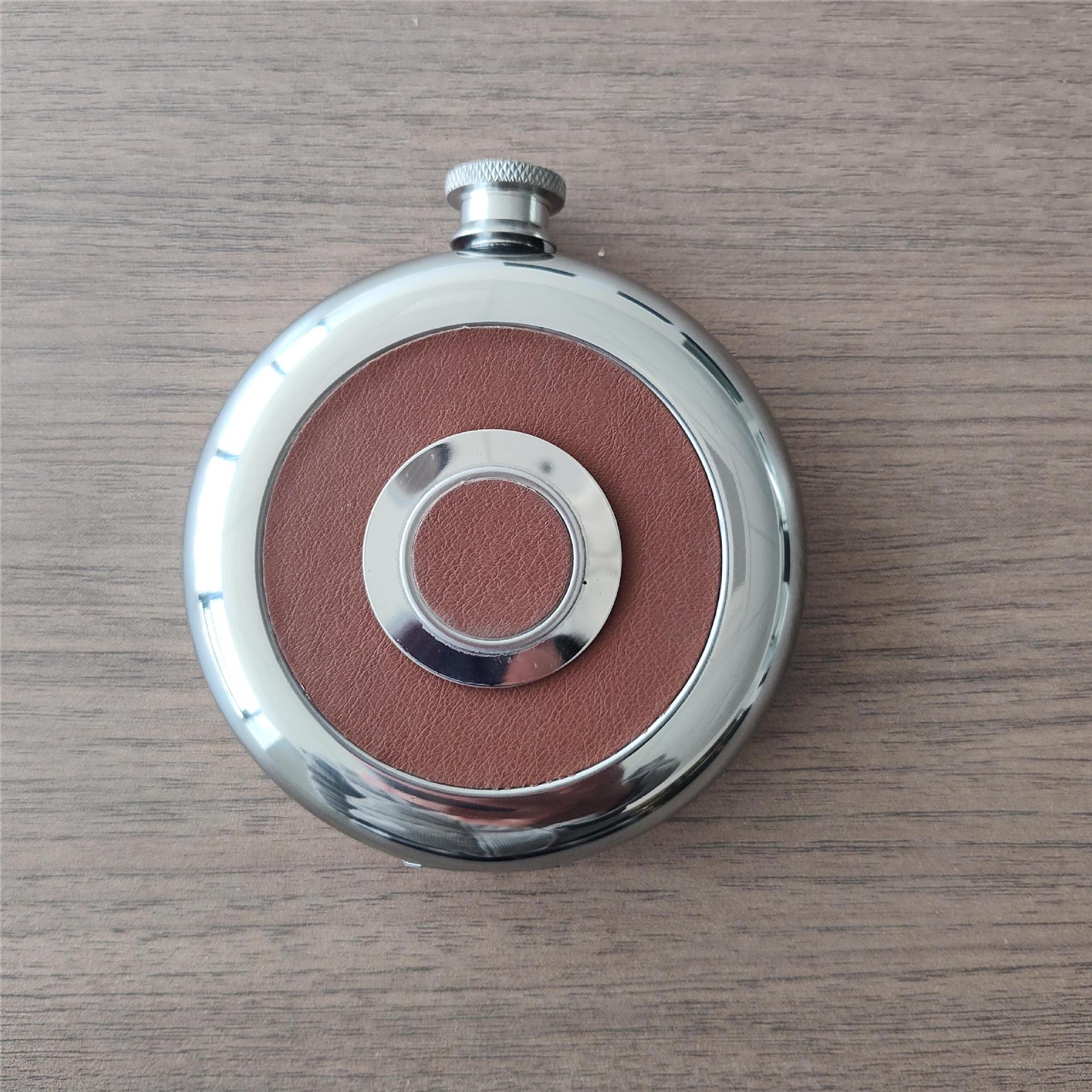 304不锈钢酒壶酒杯二合一饼形5盎司酒具镜面圆型酒壶