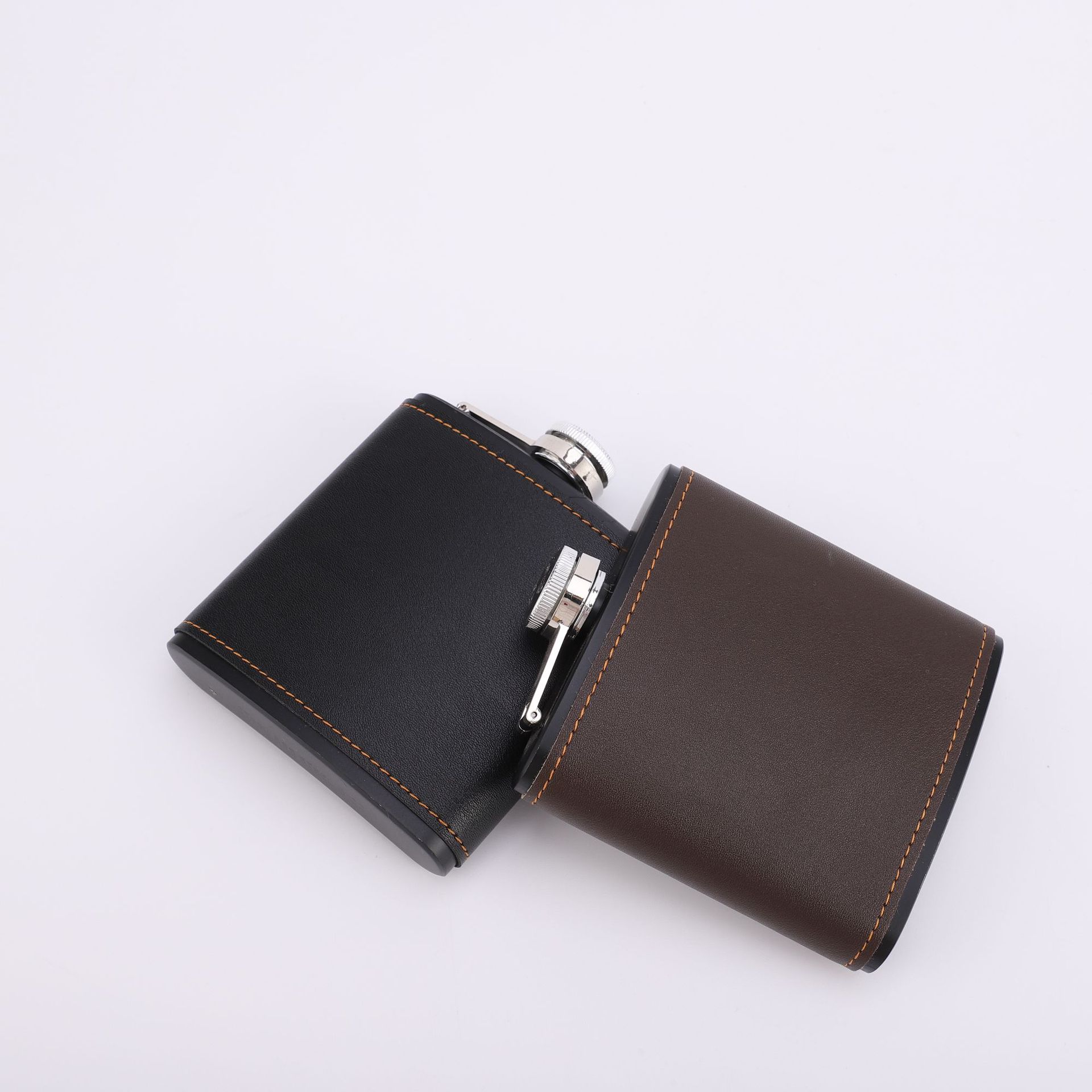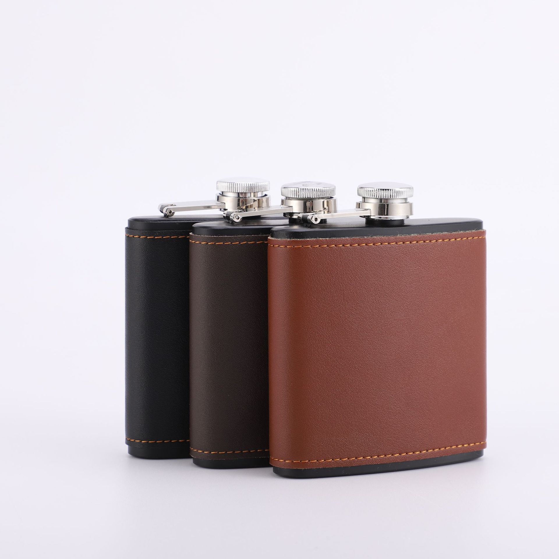 俄罗斯不锈钢酒壶户外随身便携式仿真皮黑色棕色