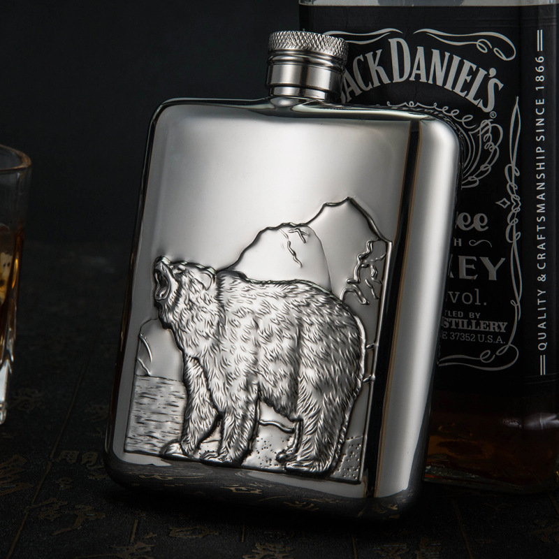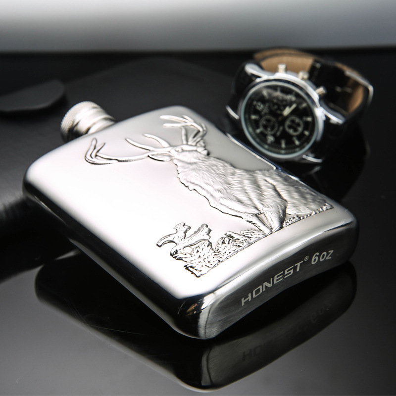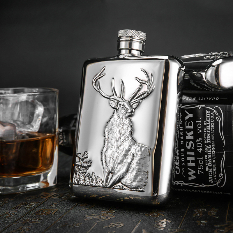 304不锈钢便携式小白酒壶酒具野营旅游户外6盎司