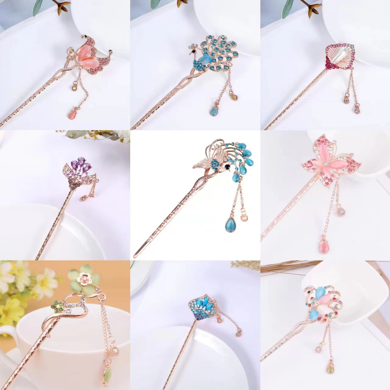 发簪高级感新中式猫眼石簪子复古轻奢后脑勺头饰步摇流苏汉服百搭