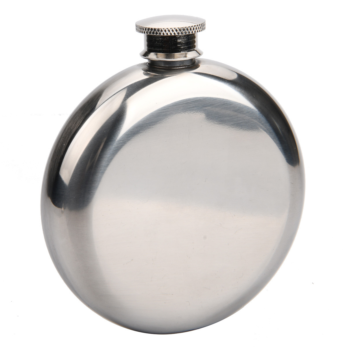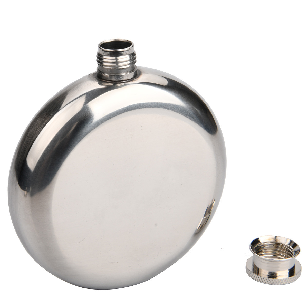 5盎司镜面光面酒壶 男士随身不锈钢便携圆形酒壶