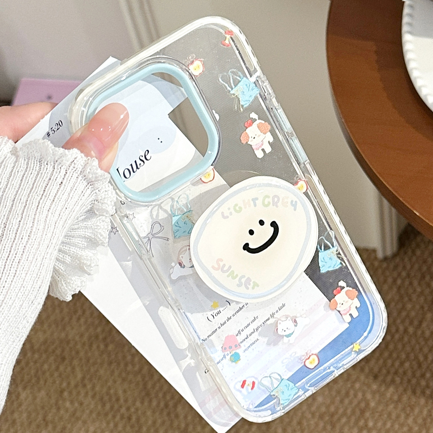 适用iphone16苹果15promax手机壳趣味小狗支架防摔透明卡通