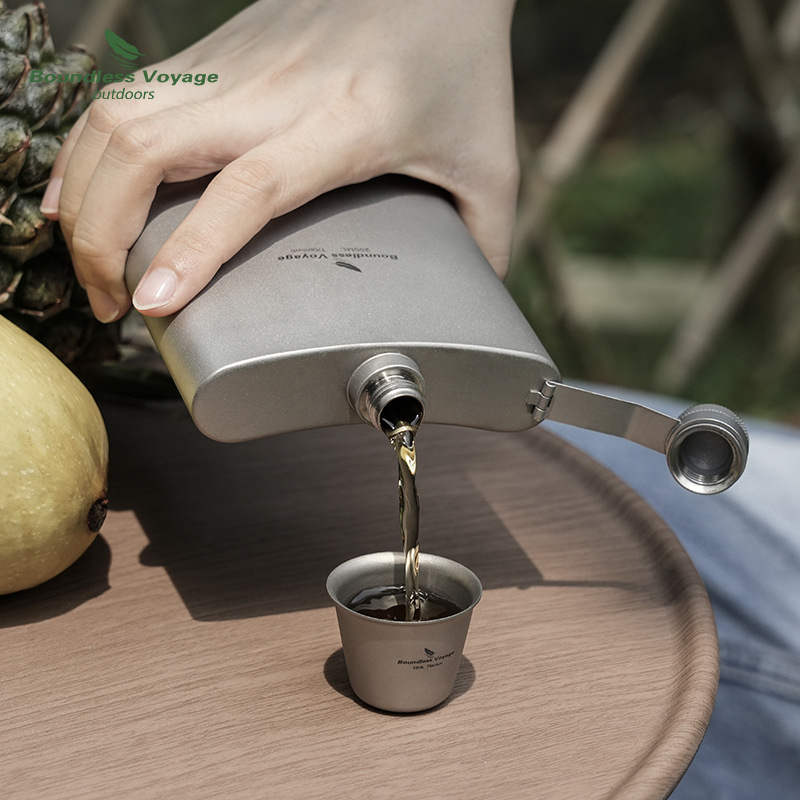 纯钛白酒壶杯漏斗随身水壶方型便携户外露营旅行