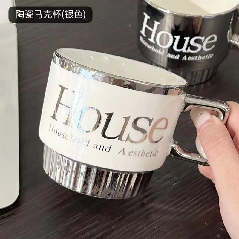 欧式ins咖啡杯喝水杯陶瓷家用下午茶茶具电镀银色马克杯套杯情侣