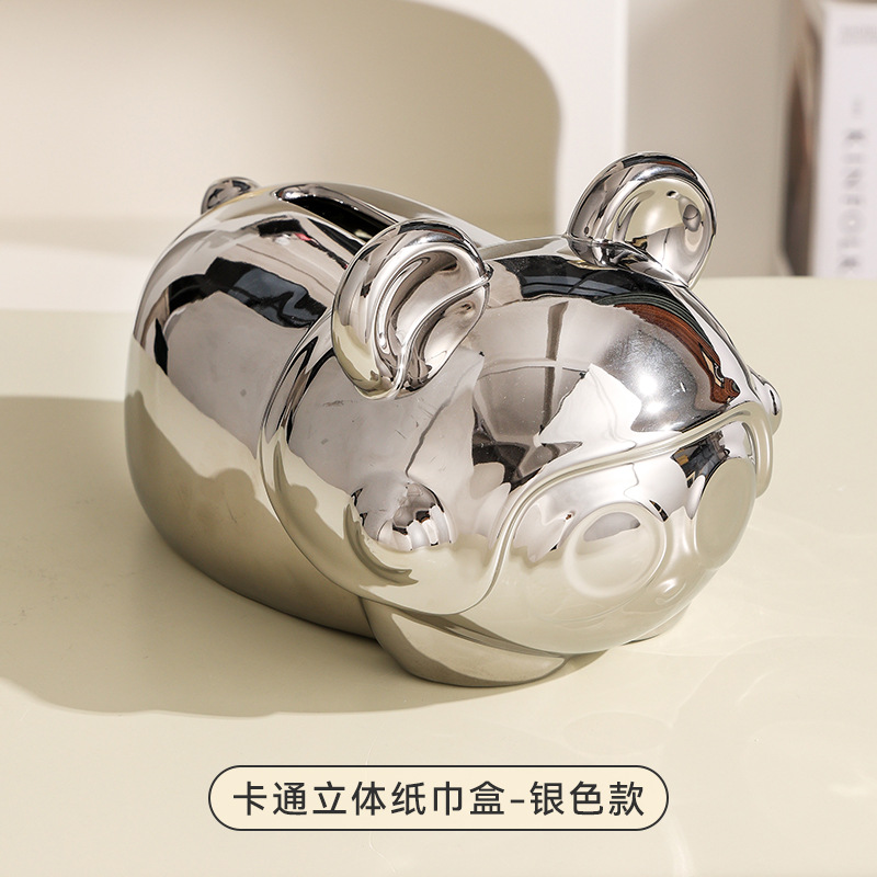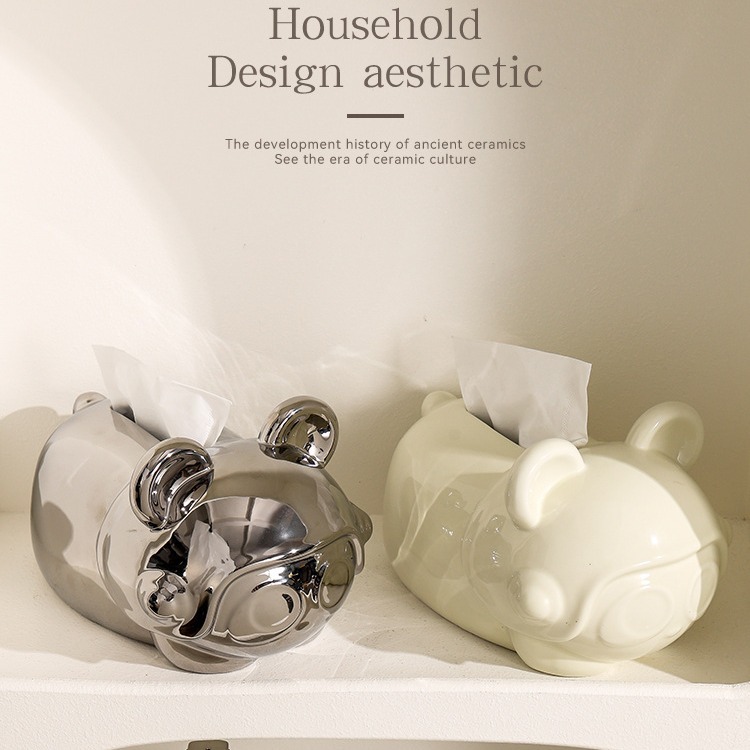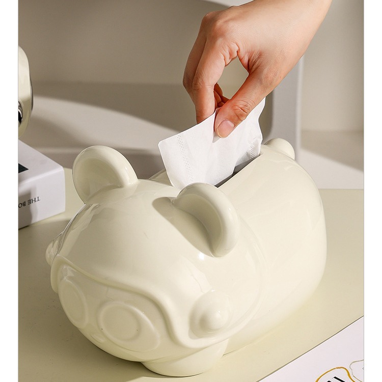 陶瓷奶油风纸巾盒客厅高级感抽纸盒轻奢创意小熊卡通家用餐巾纸盒