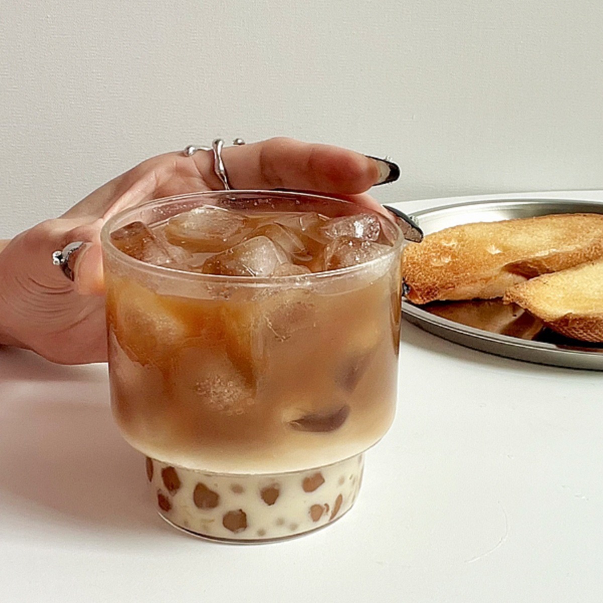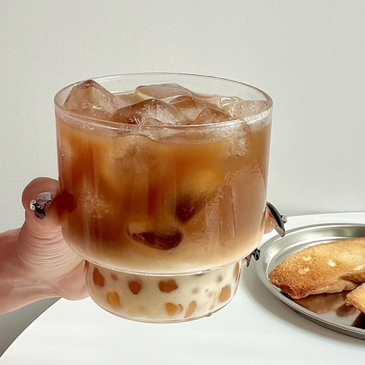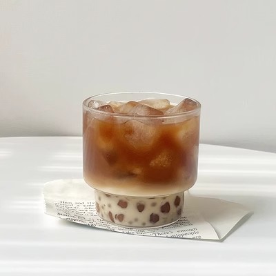 咖啡店耐高温可叠玻璃水杯冰拿铁咖啡杯牛奶杯果汁饮品杯冷饮杯