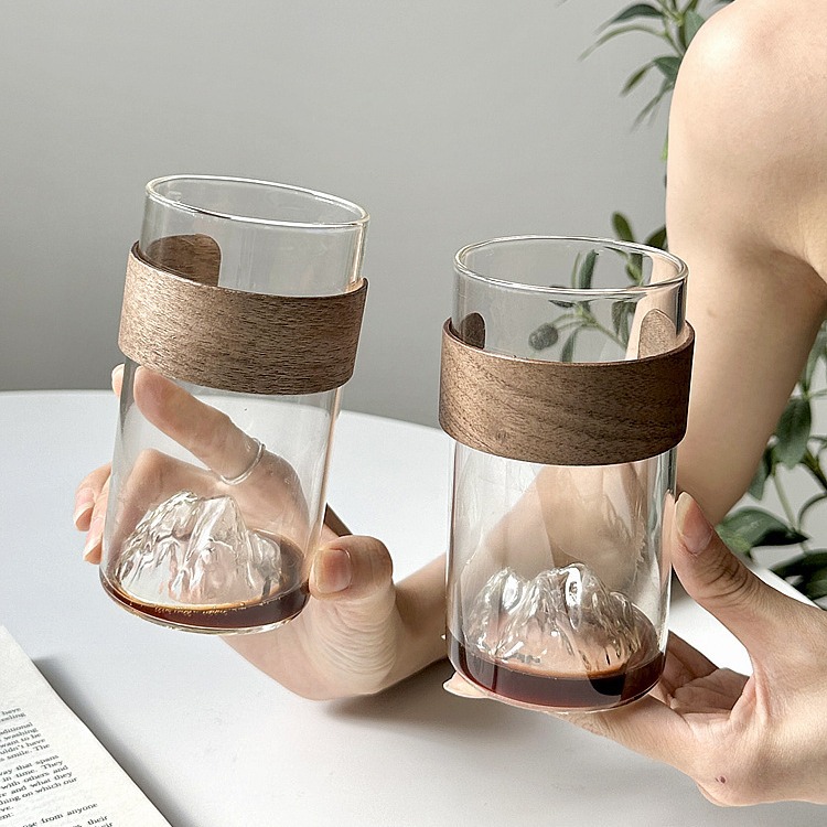 观山杯冰美式拿铁杯咖啡杯富士山杯防烫耐高温水杯饮品杯家用杯子