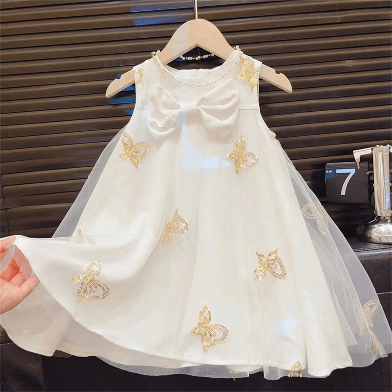 2025洋气夏季新款韩版女童蝴蝶亮片刺绣无袖网纱连衣裙女孩公主裙