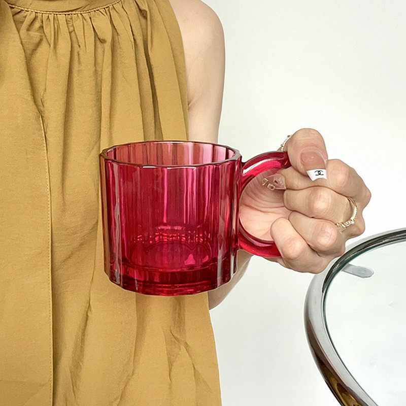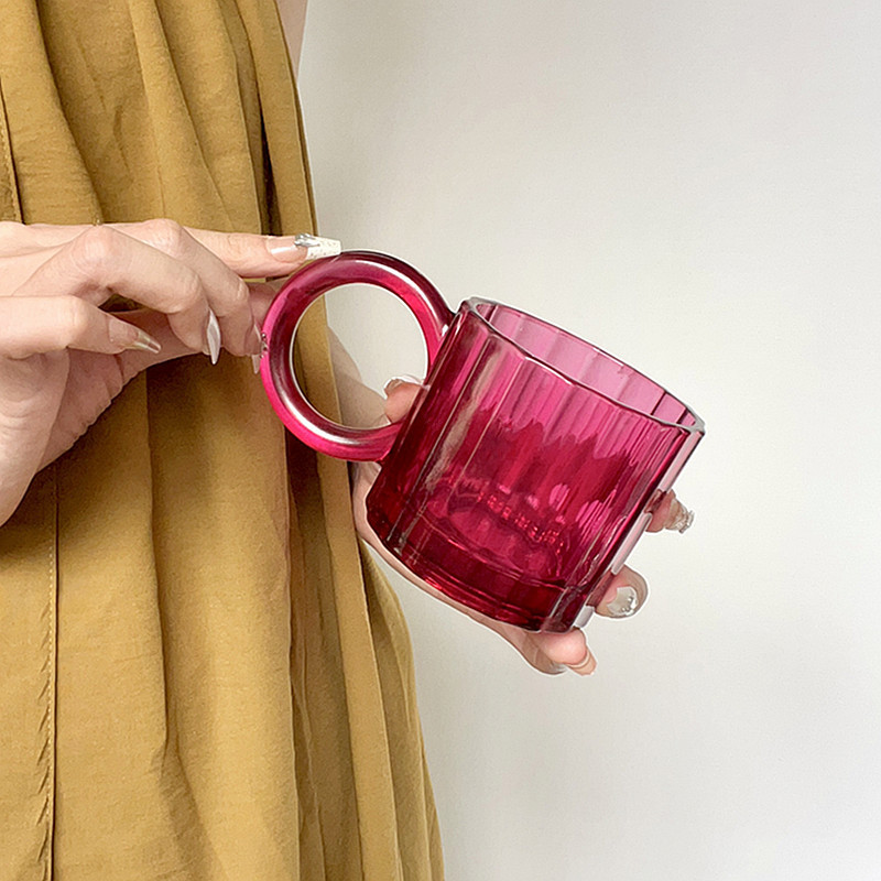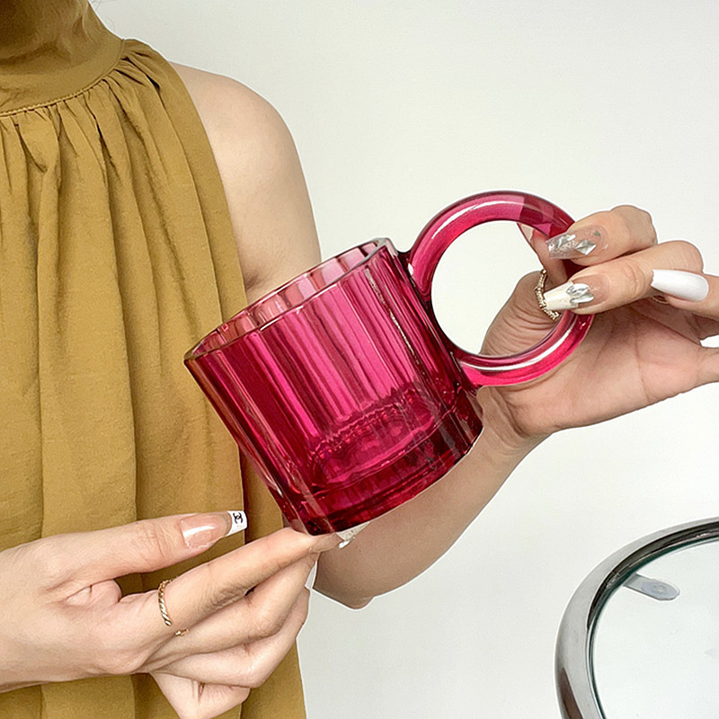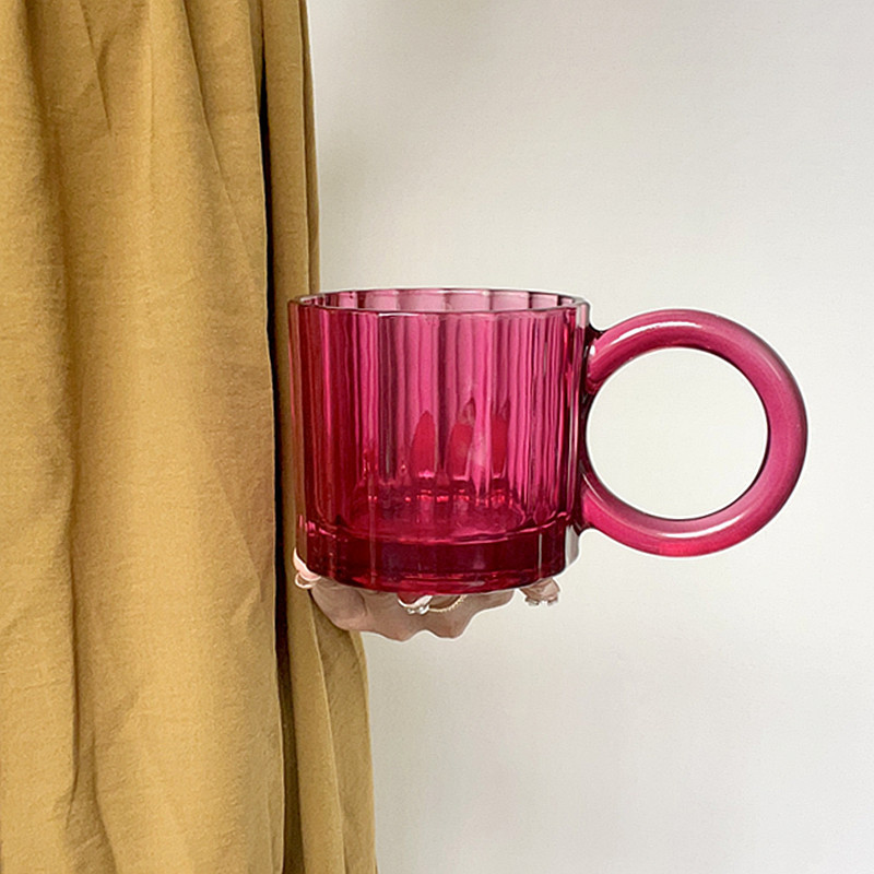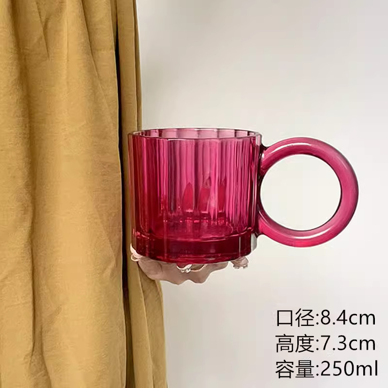 小众设计竖纹圆环把手玻璃水杯高颜值大耳朵马克杯饮料杯咖啡杯子