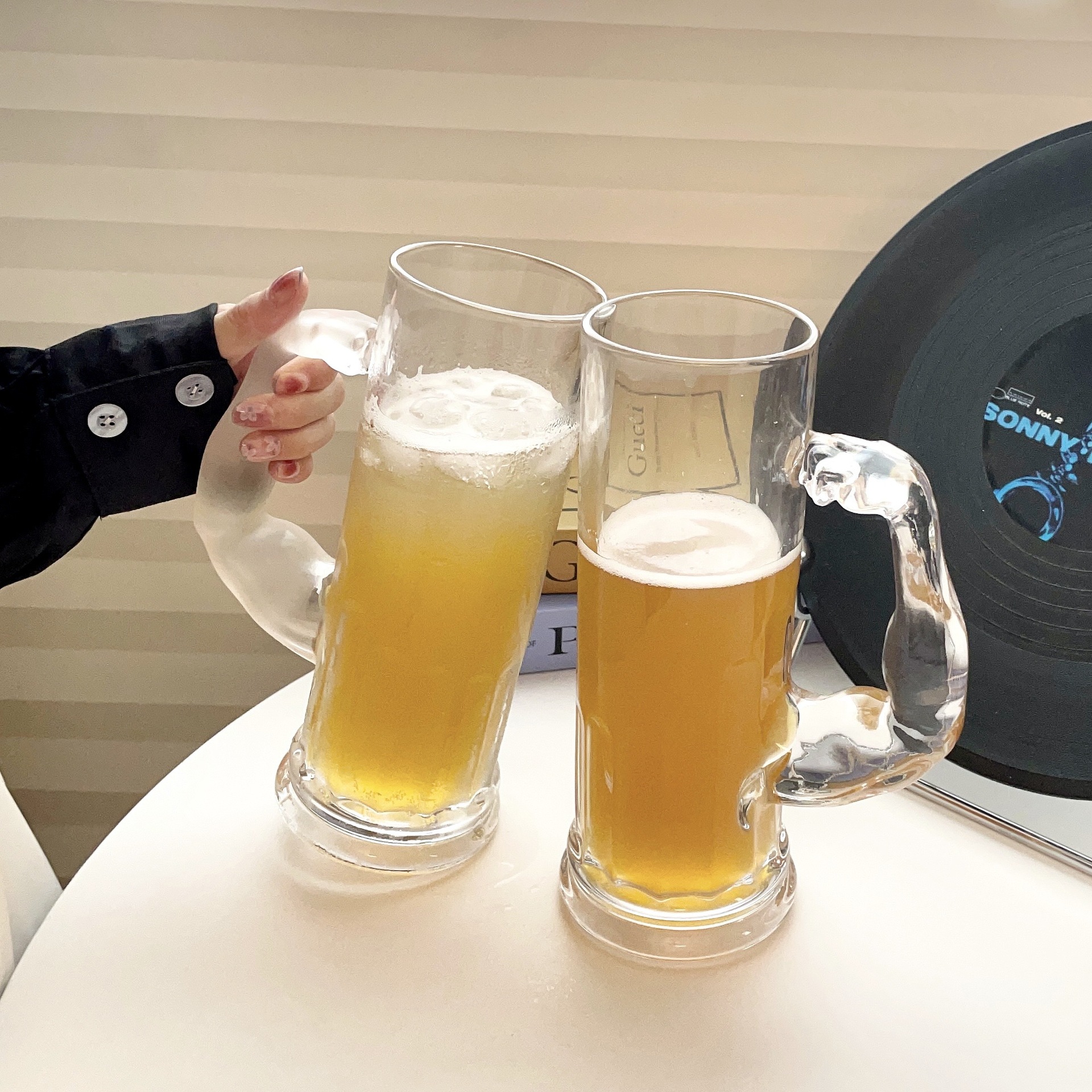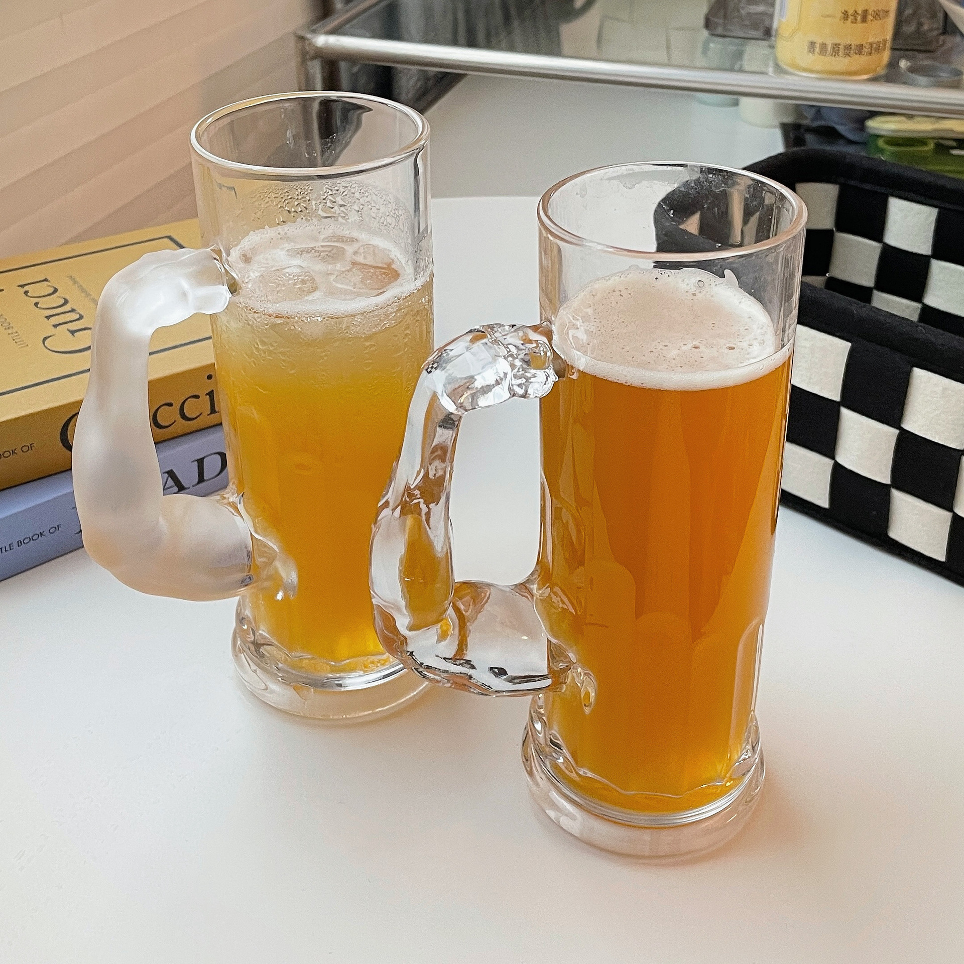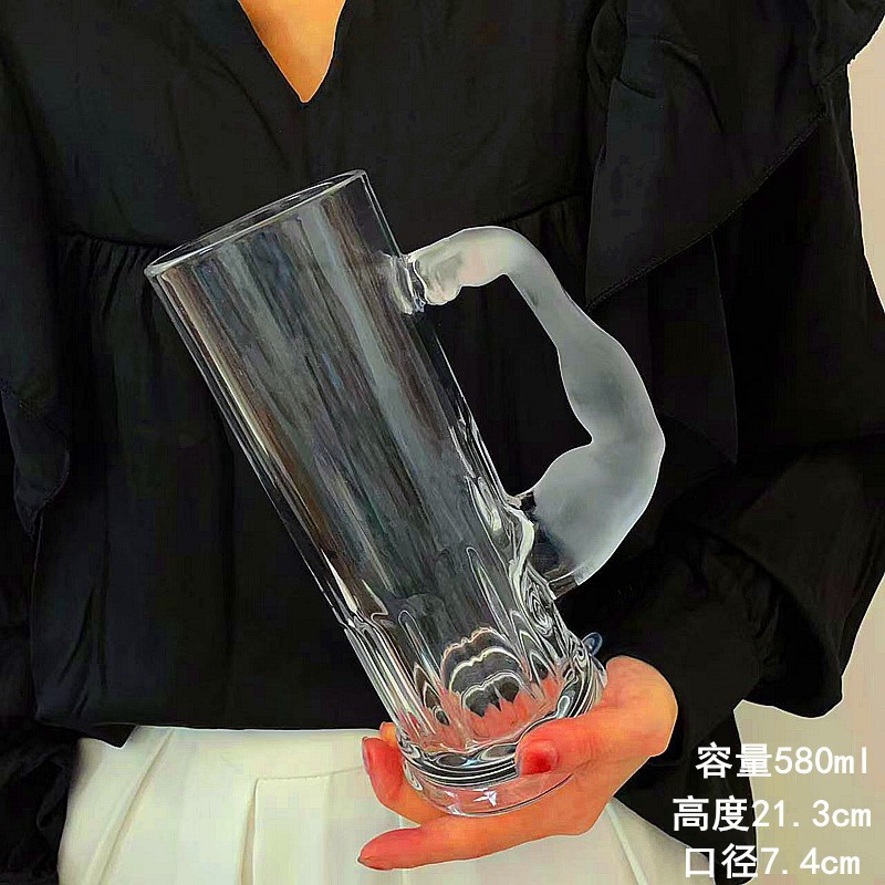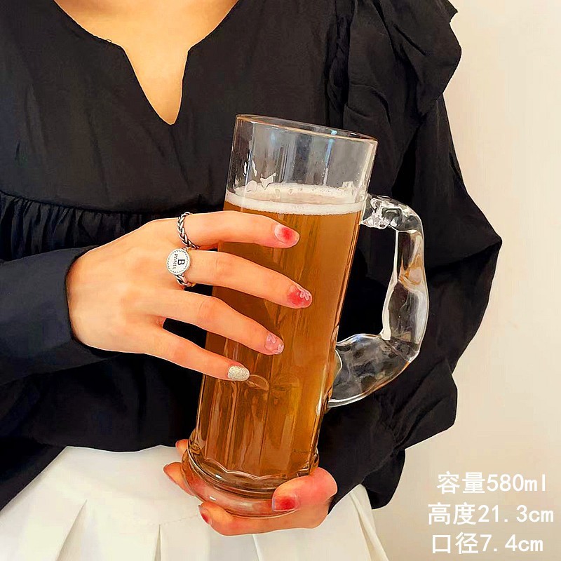 大力士啤酒杯带把水手杯大容量果汁杯高颜值个性家用肌肉玻璃水杯