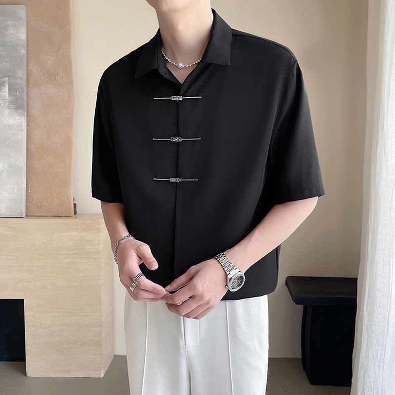 新中式国风衬衫男士短袖痞帅冰丝薄款潮牌潮流宽松高级感男装衬衣
