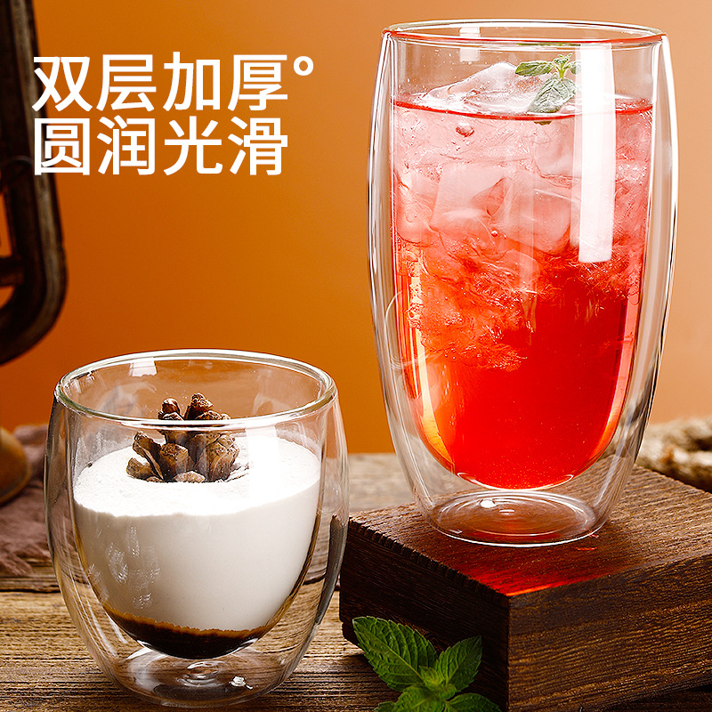 简约双层隔热透明玻璃杯耐冷热咖啡杯创意水杯果汁杯子冷饮杯