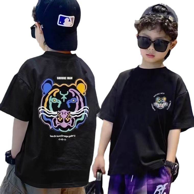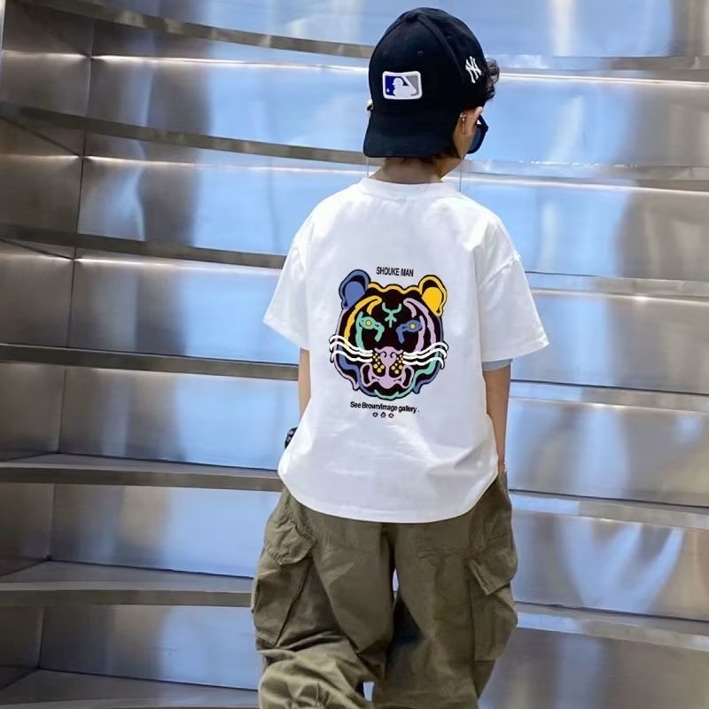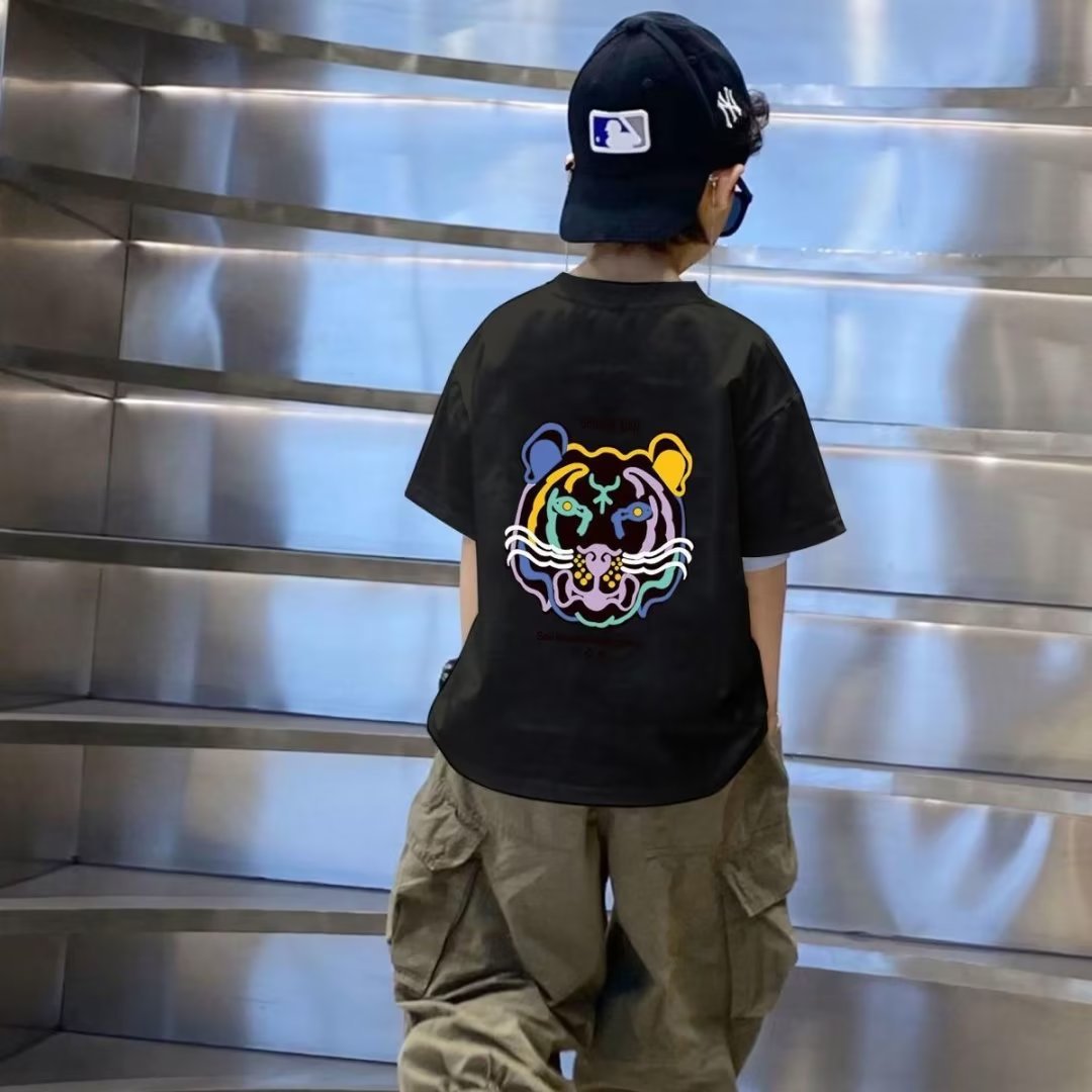童装男童夏装短袖T恤新款宽松卡通印花儿童男孩夏季潮服大童帅气1