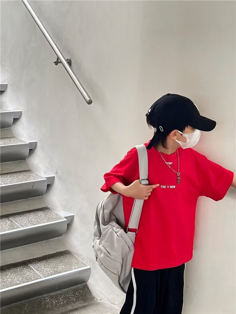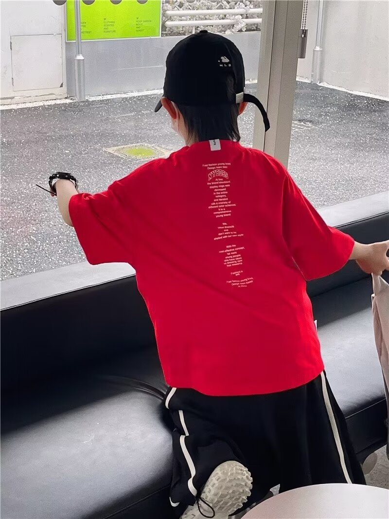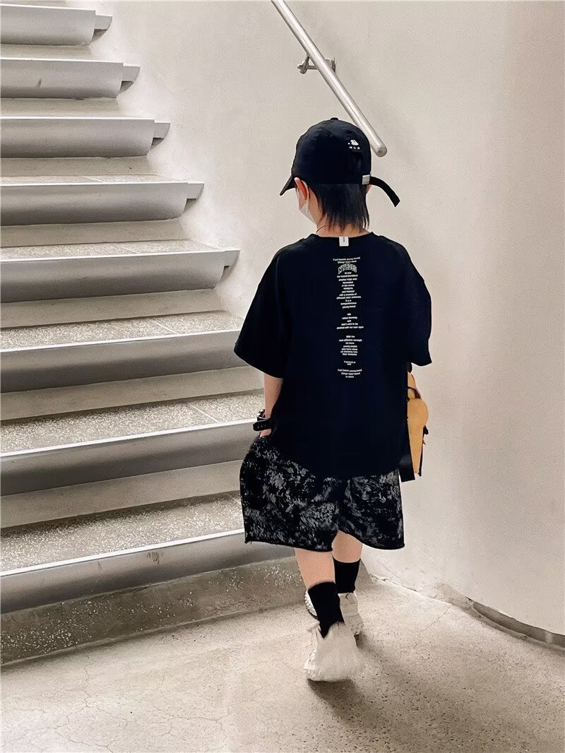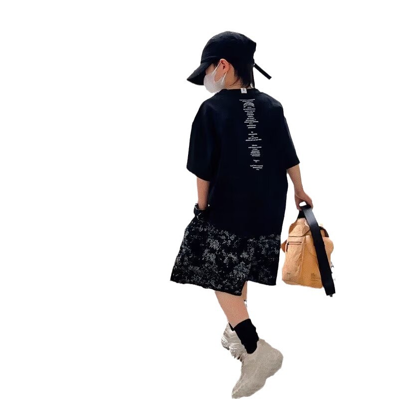 夏季童装潮流宽松ins半袖上衣男孩创意字母休闲短袖T恤儿童潮