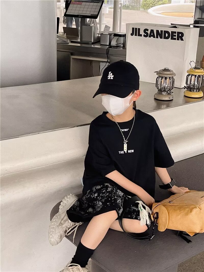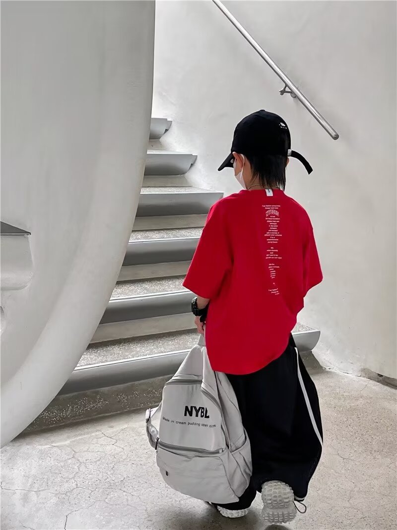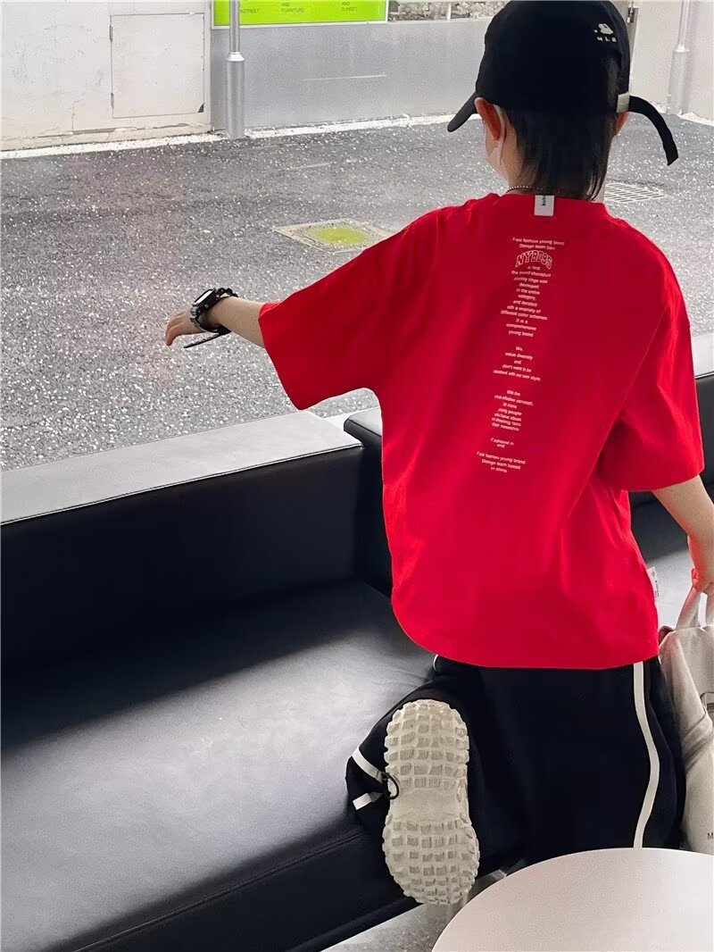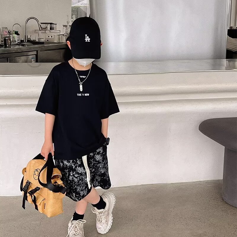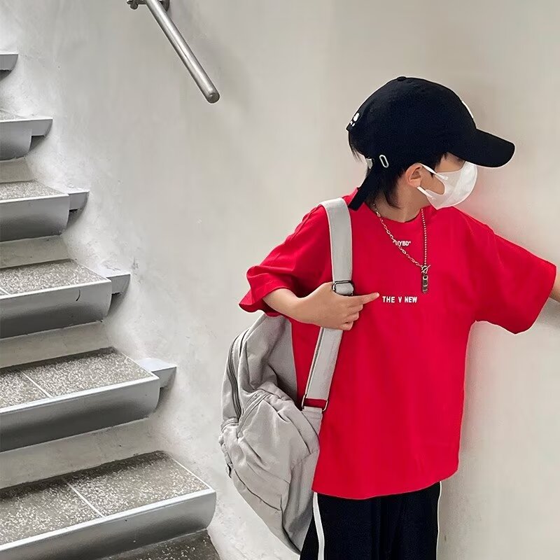 夏季童装潮流宽松ins半袖上衣男孩创意字母休闲短袖T恤儿童潮