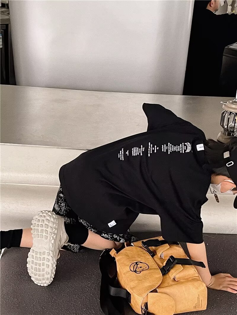潮牌美式短袖T恤男生夏季新款小众设计感百搭时尚印花休闲上衣服