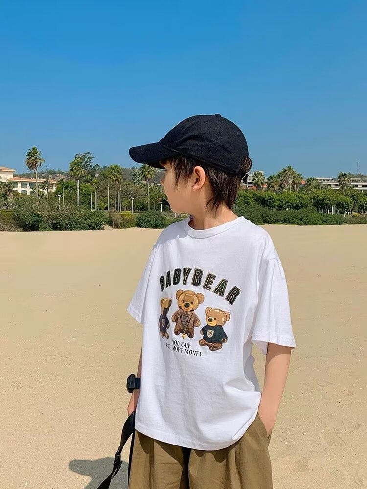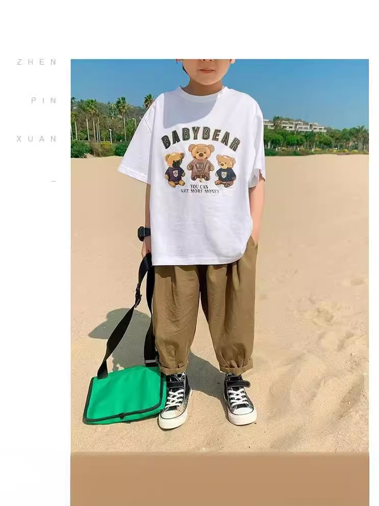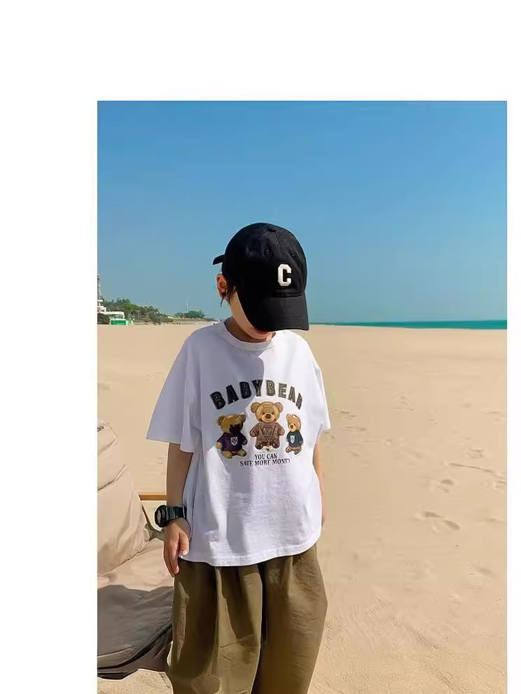 韩版男童夏装白色童装棉T恤中大童儿童短袖男孩洋气夏装半袖上衣