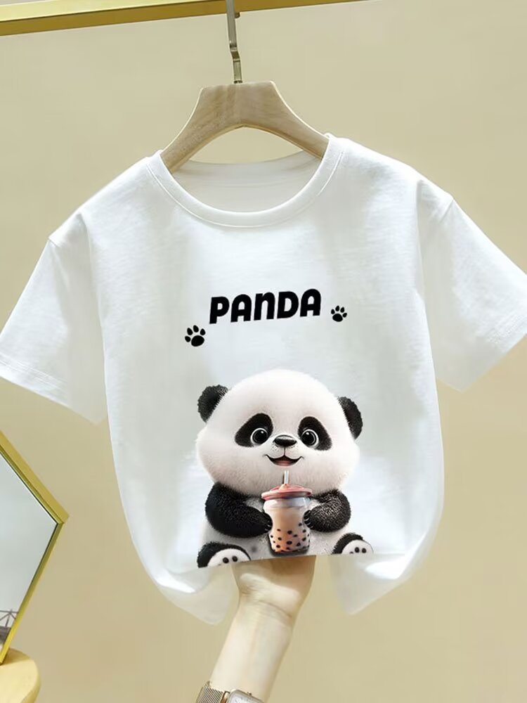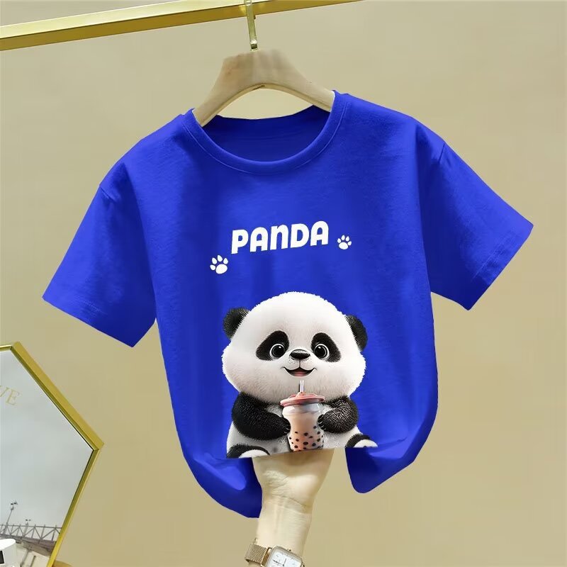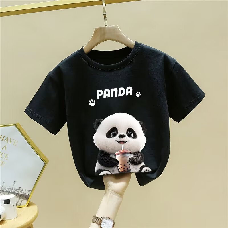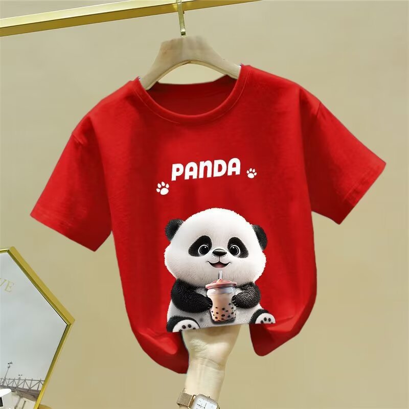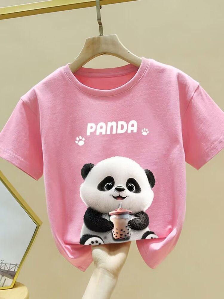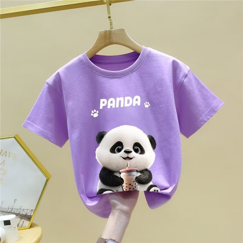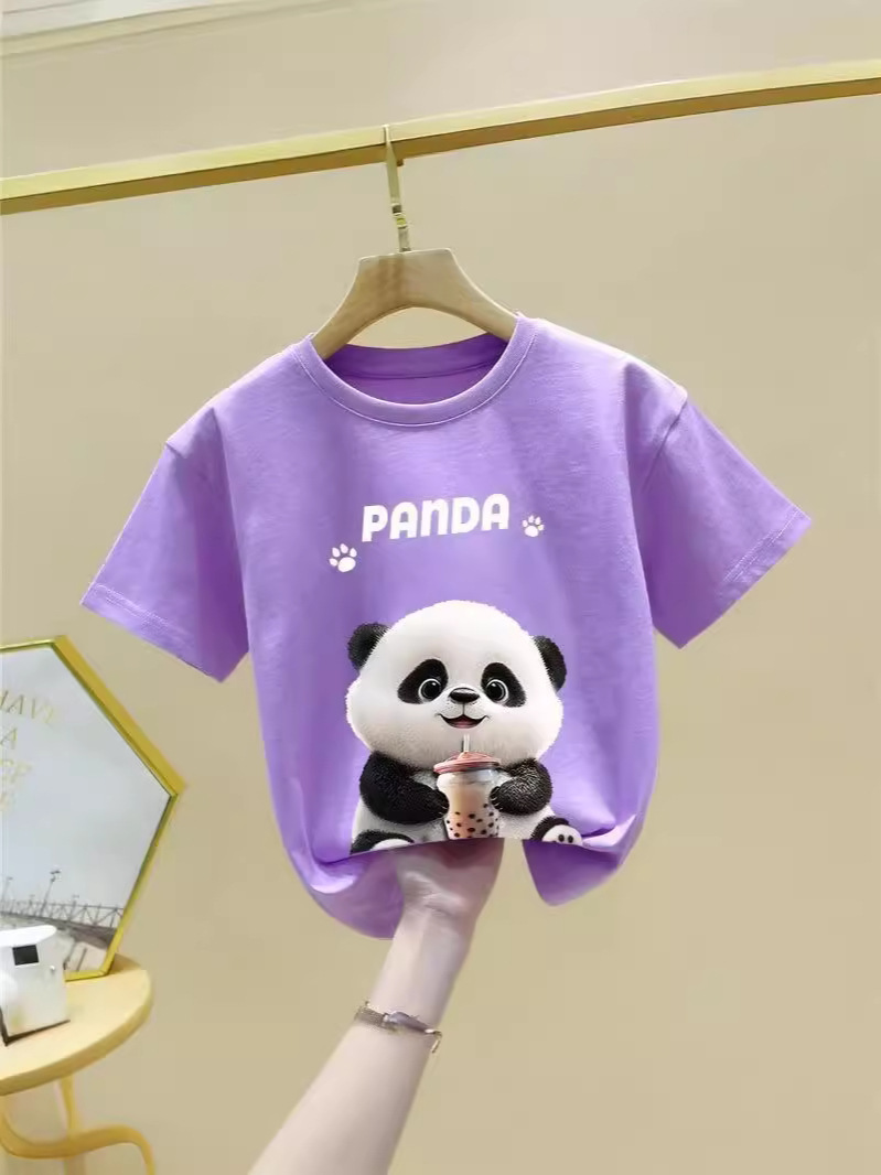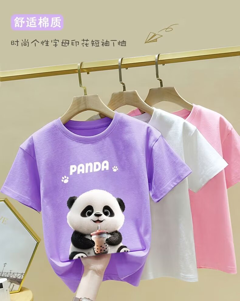 童装夏季纯棉短袖新款卡通熊猫t恤男女童潮牌时尚学生打底衫
