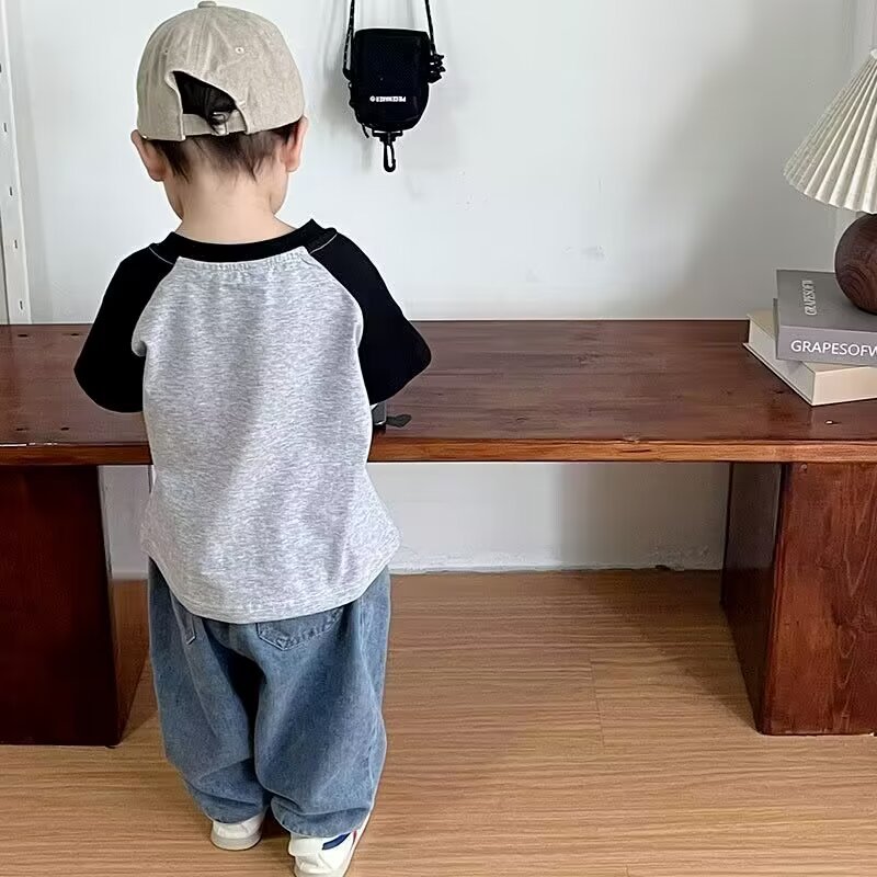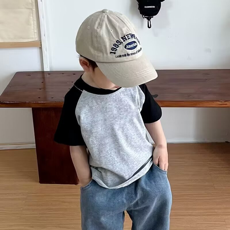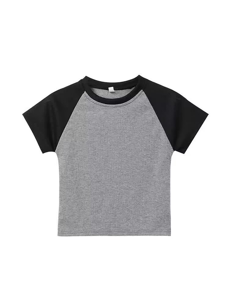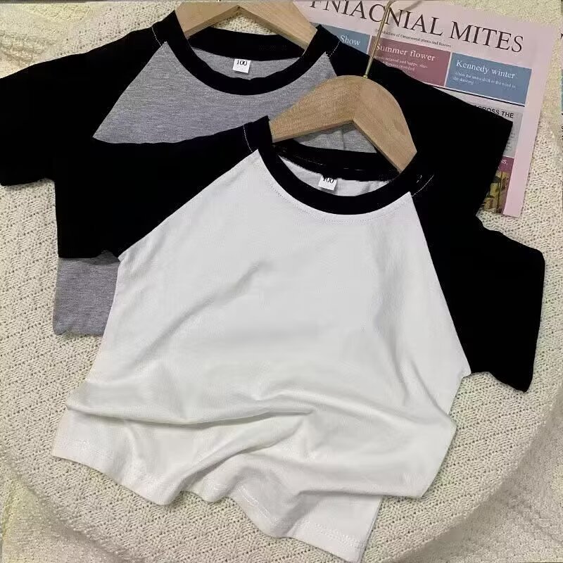 外贸童装短袖夏季薄款舒适打底T恤男女童插肩袖拼接半袖上衣