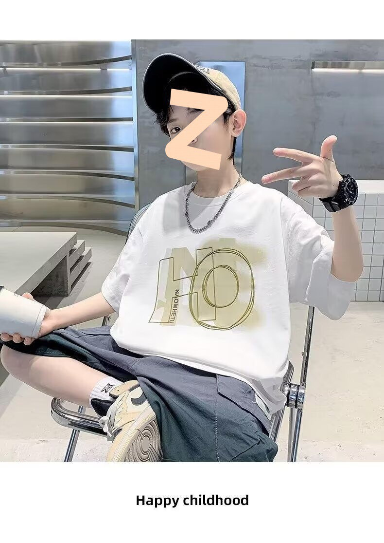 泰如夏季新款韩版男童美式套头洋气百搭短袖T恤儿童时尚潮