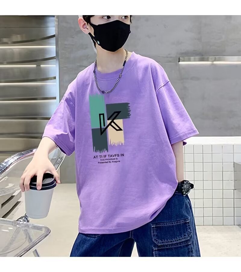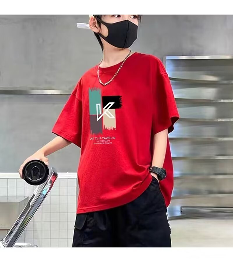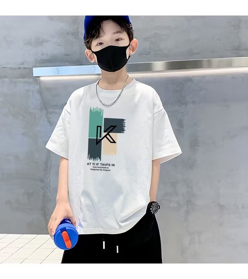 童装男童夏装短袖T恤新款宽松卡通印花儿童男孩夏季潮服大童帅气