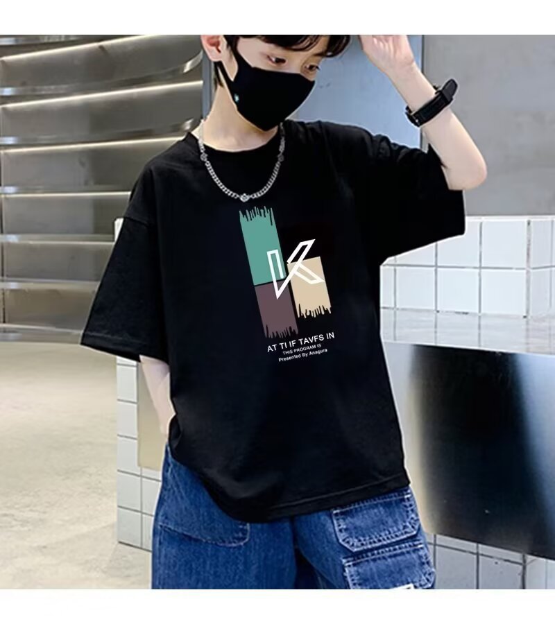 新款短袖t恤男夏季韩版潮流时尚半袖上衣港风宽松休闲潮牌体恤衫